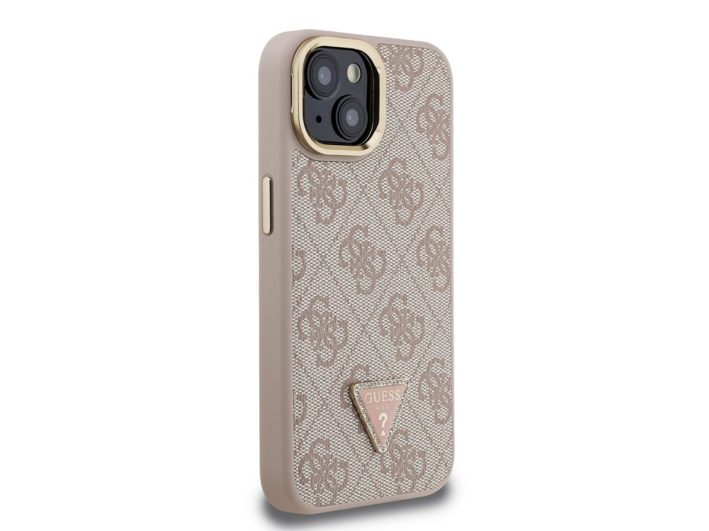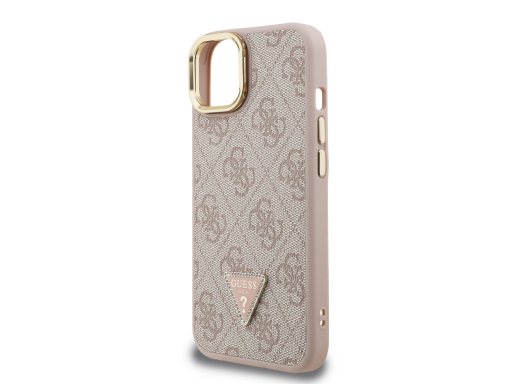 Guess PU 4G Strass Triangle Logo Stand Camera Frame MagSafe Zadní Kryt pro iPhone 13 Pink