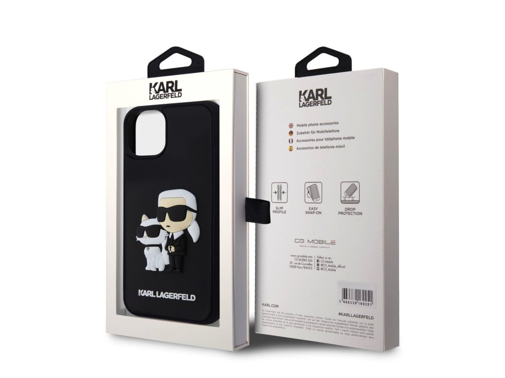 Karl Lagerfeld 3D Rubber Karl and Choupette Zadní Kryt pro iPhone 13 Black