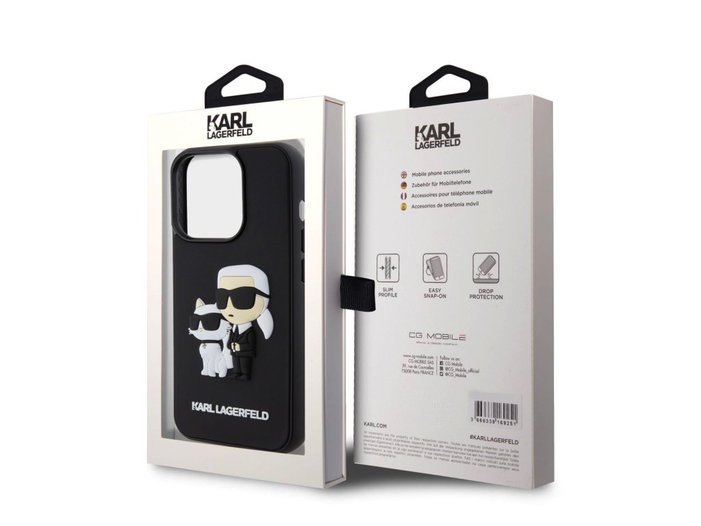 Karl Lagerfeld 3D Rubber Karl and Choupette Zadní Kryt pro iPhone 13 Pro Black