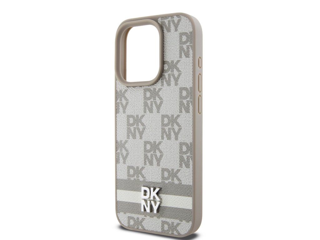 DKNY PU Leather Checkered Pattern and Stripe Zadní Kryt pro iPhone 13 Pro Max Beige