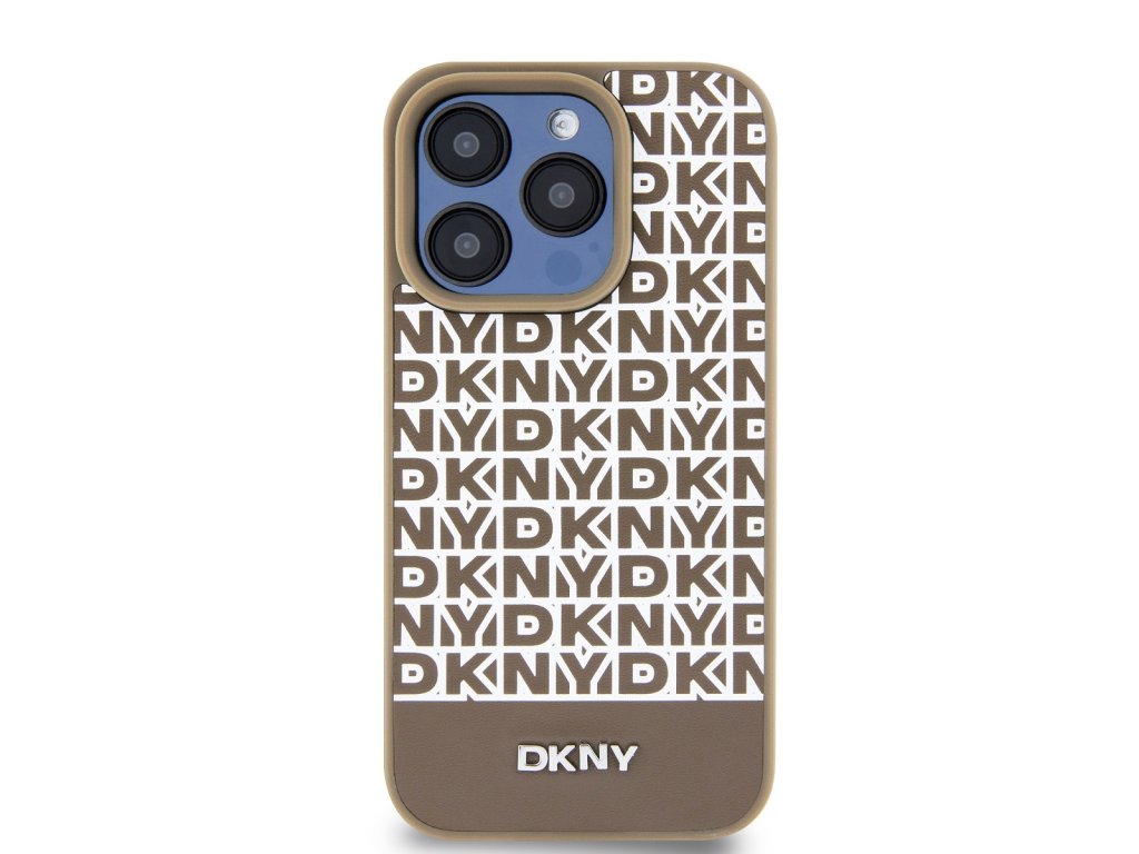 DKNY PU Leather Repeat Pattern Bottom Stripe MagSafe Zadní Kryt pro iPhone 13 Pro Max Brown