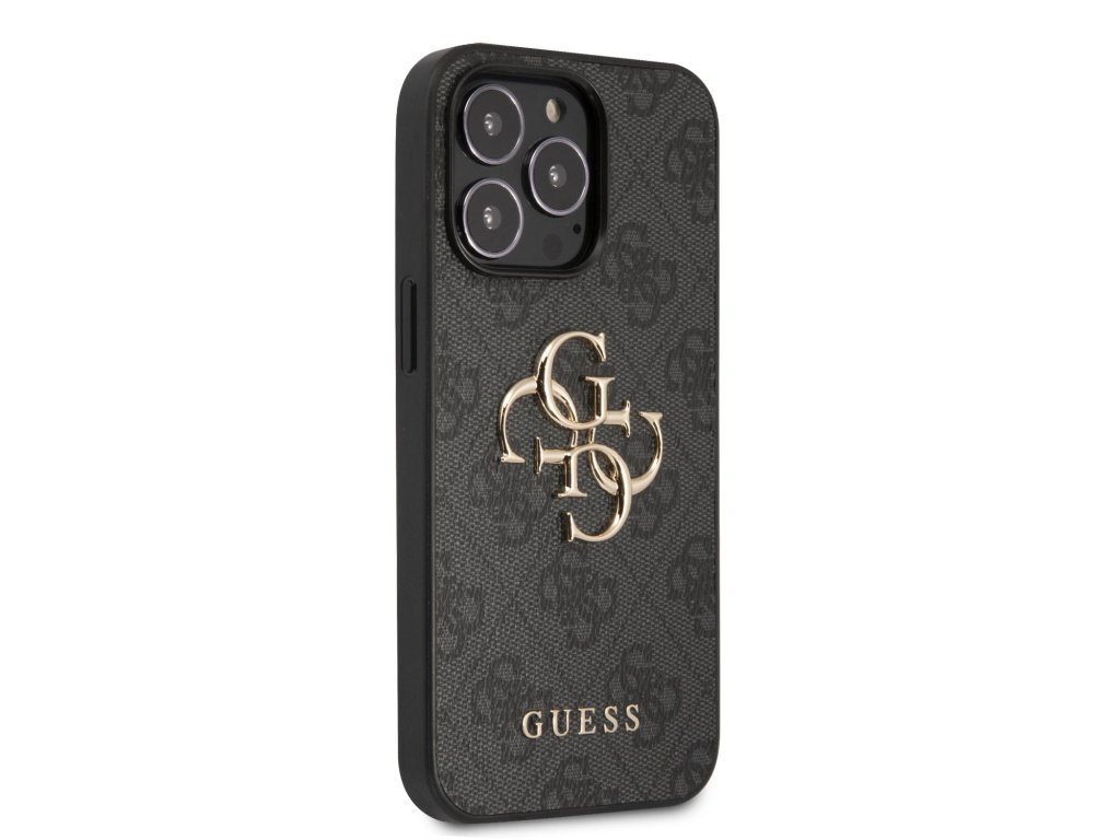 Guess PU 4G Metal Logo Zadní Kryt pro iPhone 13 Pro Max Grey