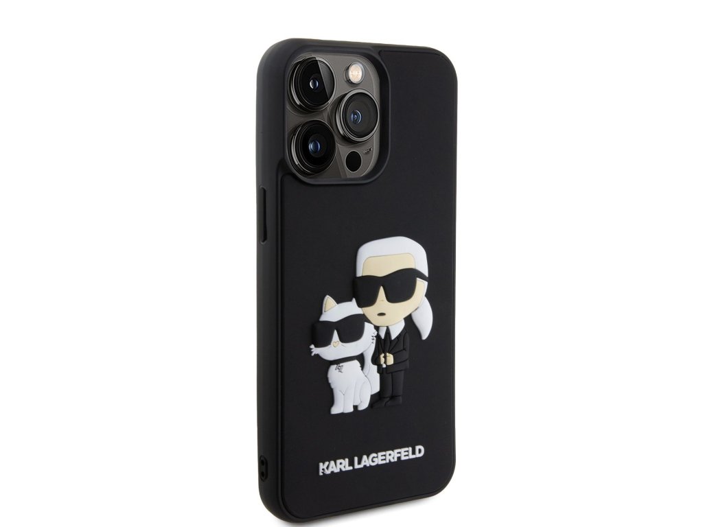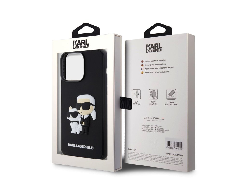 Karl Lagerfeld 3D Rubber Karl and Choupette Zadní Kryt pro iPhone 13 Pro Max Black