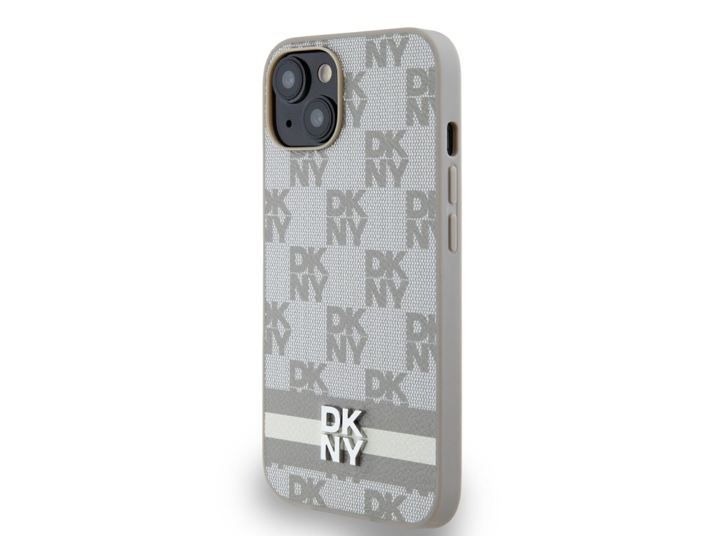 DKNY PU Leather Checkered Pattern and Stripe Zadní Kryt pro iPhone 14 Beige