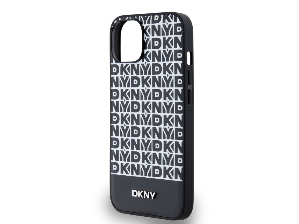 DKNY PU Leather Repeat Pattern Bottom Stripe MagSafe Zadní Kryt pro iPhone 14 Black