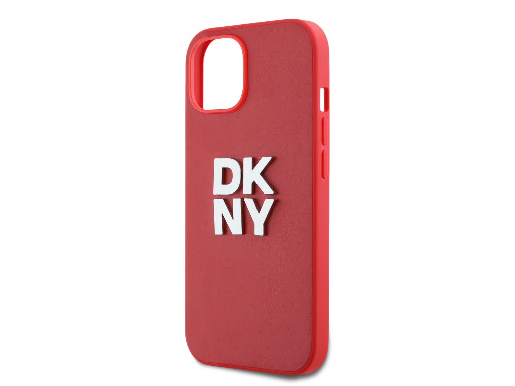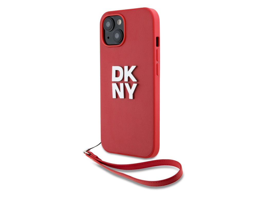 DKNY PU Leather Stack Logo Wrist Strap Zadní Kryt pro iPhone 14 Red