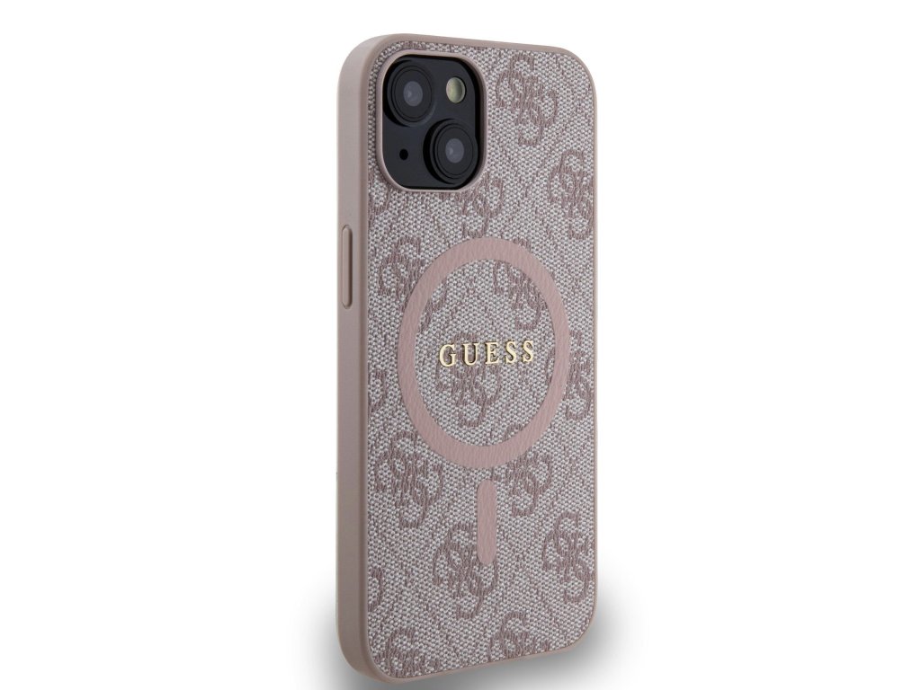 Guess PU Leather 4G Colored Ring MagSafe Zadní Kryt pro iPhone 14 Pink