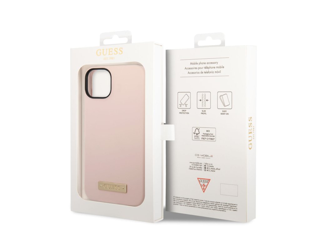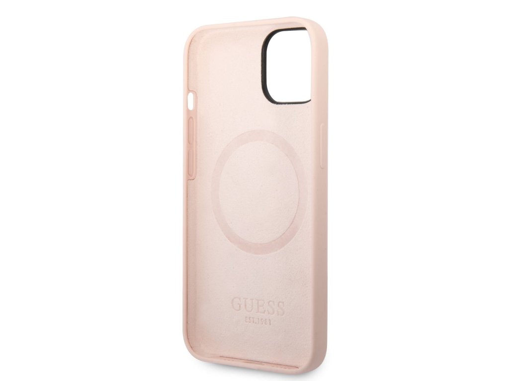 Guess Silicone Metal Logo MagSafe Kompatibilní Zadní Kryt pro iPhone 14 Plus Pink