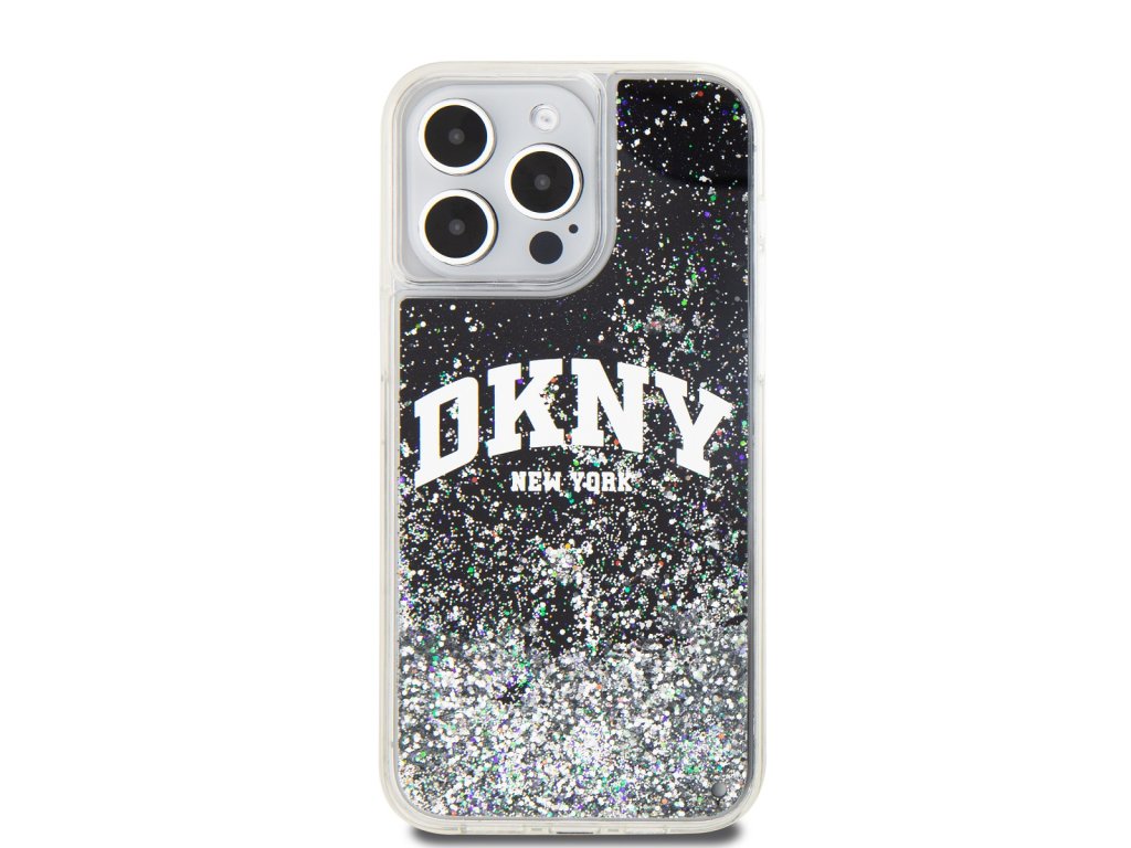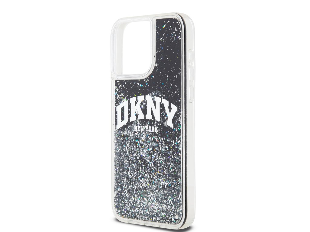 DKNY Liquid Glitter Arch Logo Zadní Kryt pro iPhone 14 Pro Black