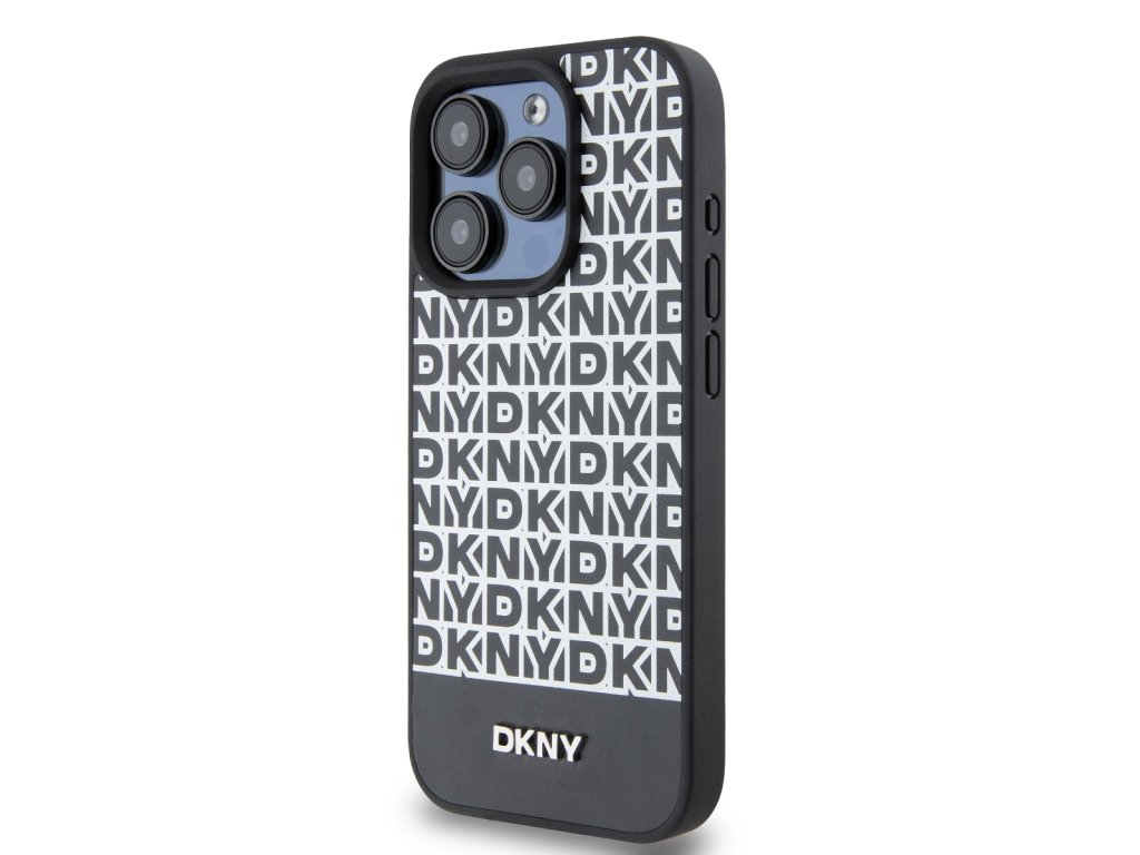 DKNY PU Leather Repeat Pattern Bottom Stripe MagSafe Zadní Kryt pro iPhone 14 Pro Black