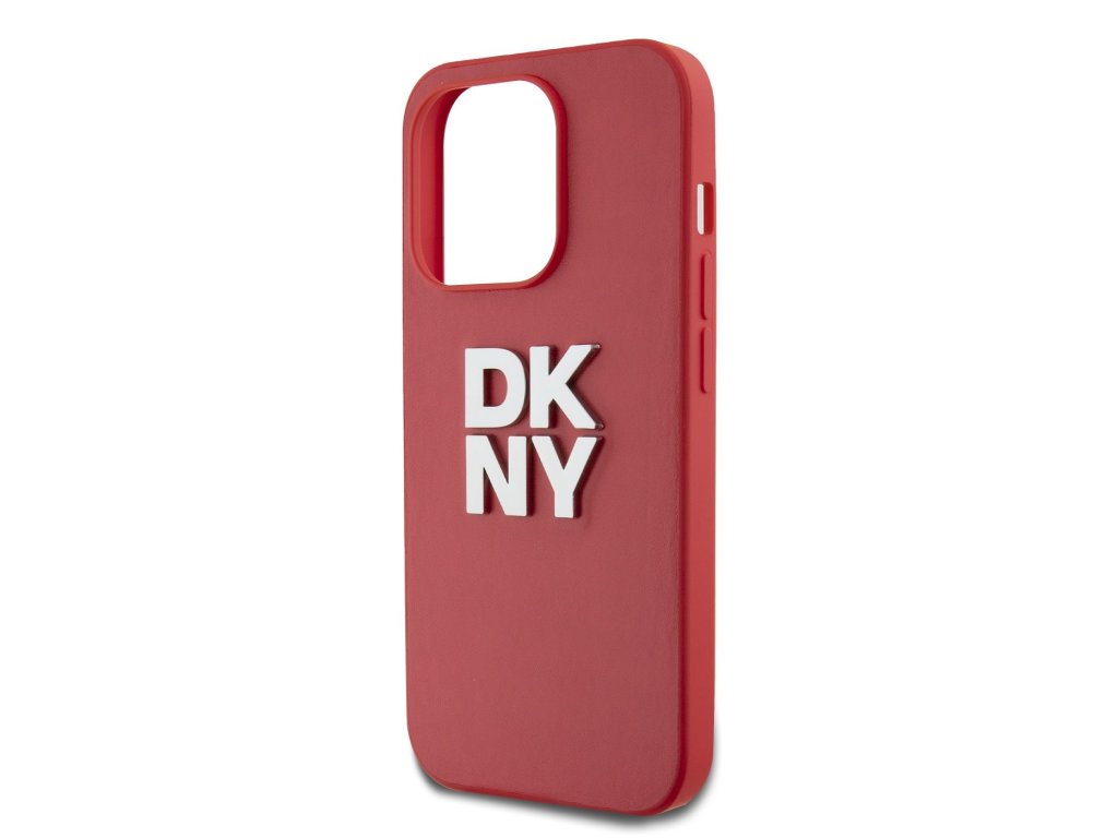 DKNY PU Leather Stack Logo Wrist Strap Zadní Kryt pro iPhone 14 Pro Red