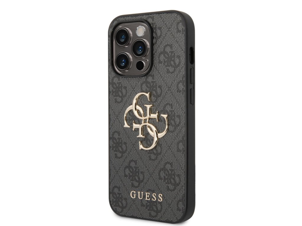 Guess PU 4G Metal Logo Zadní Kryt pro iPhone 14 Pro Grey