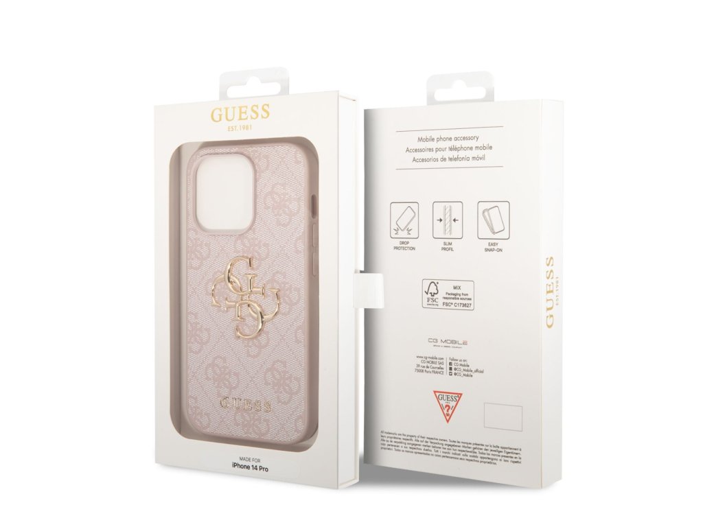 Guess PU 4G Metal Logo Zadní Kryt pro iPhone 14 Pro Pink