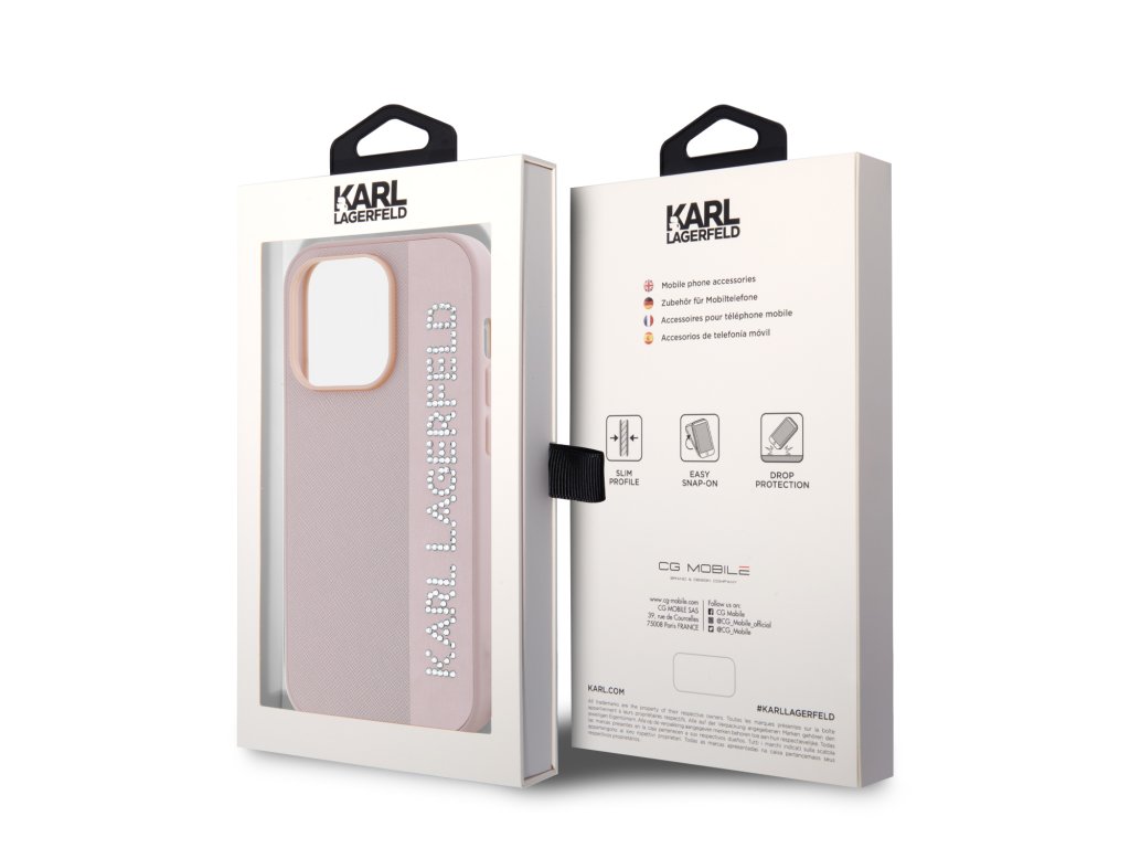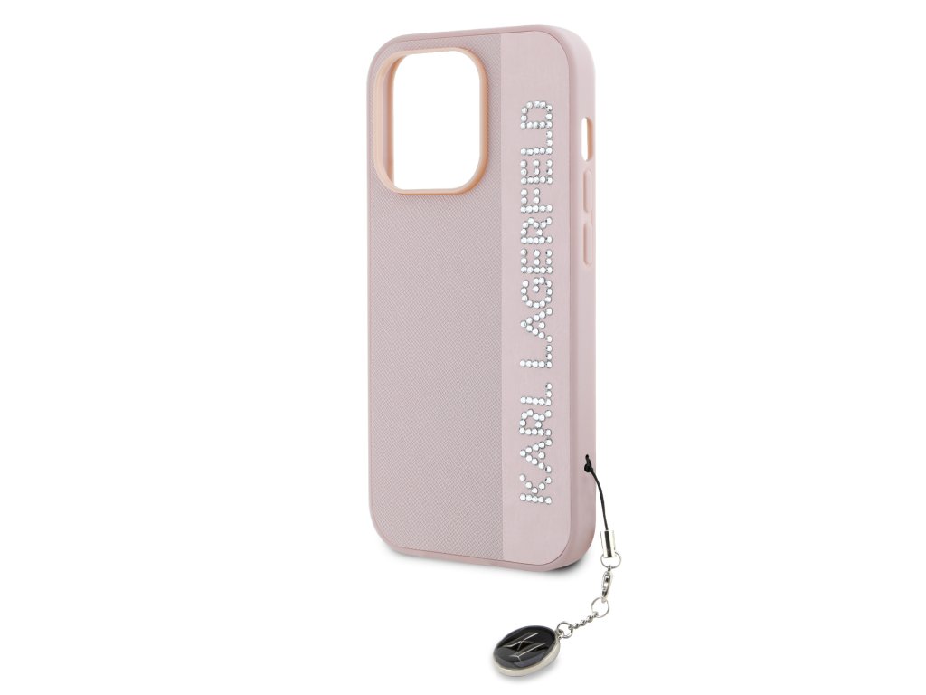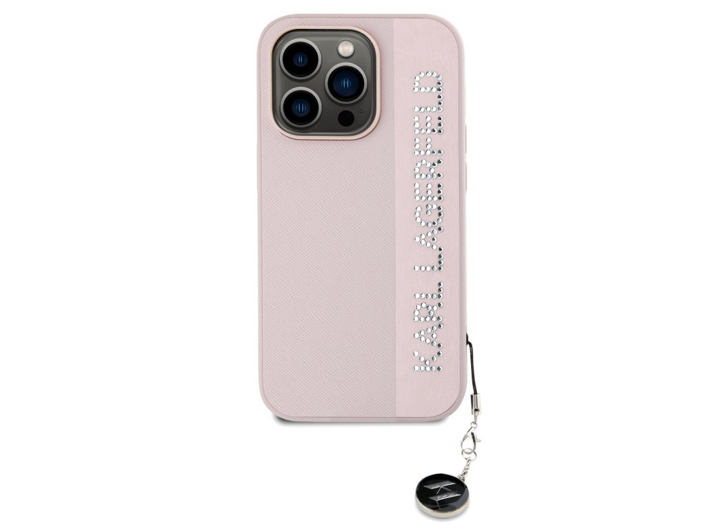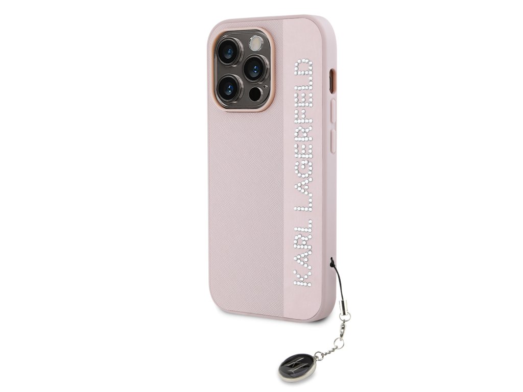 Karl Lagerfeld PU Saffiano Rhinestone Charm Zadní Kryt pro iPhone 14 Pro Pink