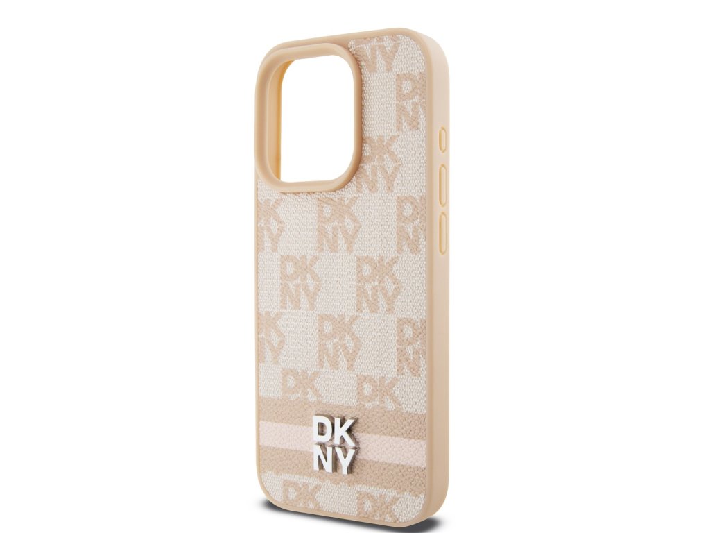DKNY PU Leather Checkered Pattern and Stripe Zadní Kryt pro iPhone 14 Pro Max Pink