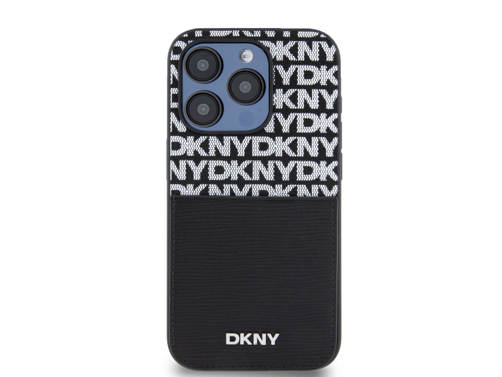 DKNY PU Leather Repeat Pattern Card Pocket Zadní Kryt pro iPhone 14 Pro Max Black