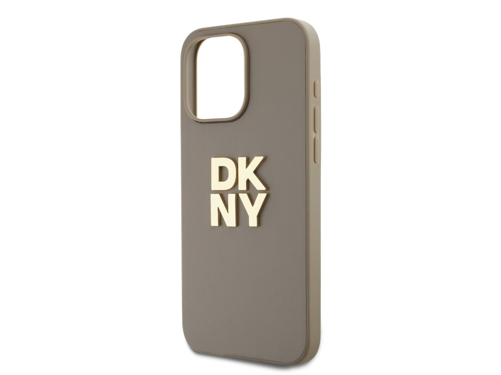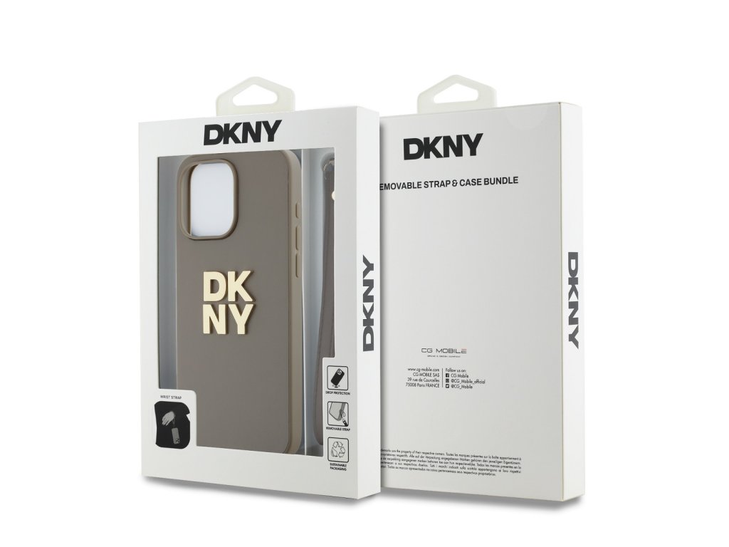 DKNY PU Leather Stack Logo Wrist Strap Zadní Kryt pro iPhone 14 Pro Max Beige