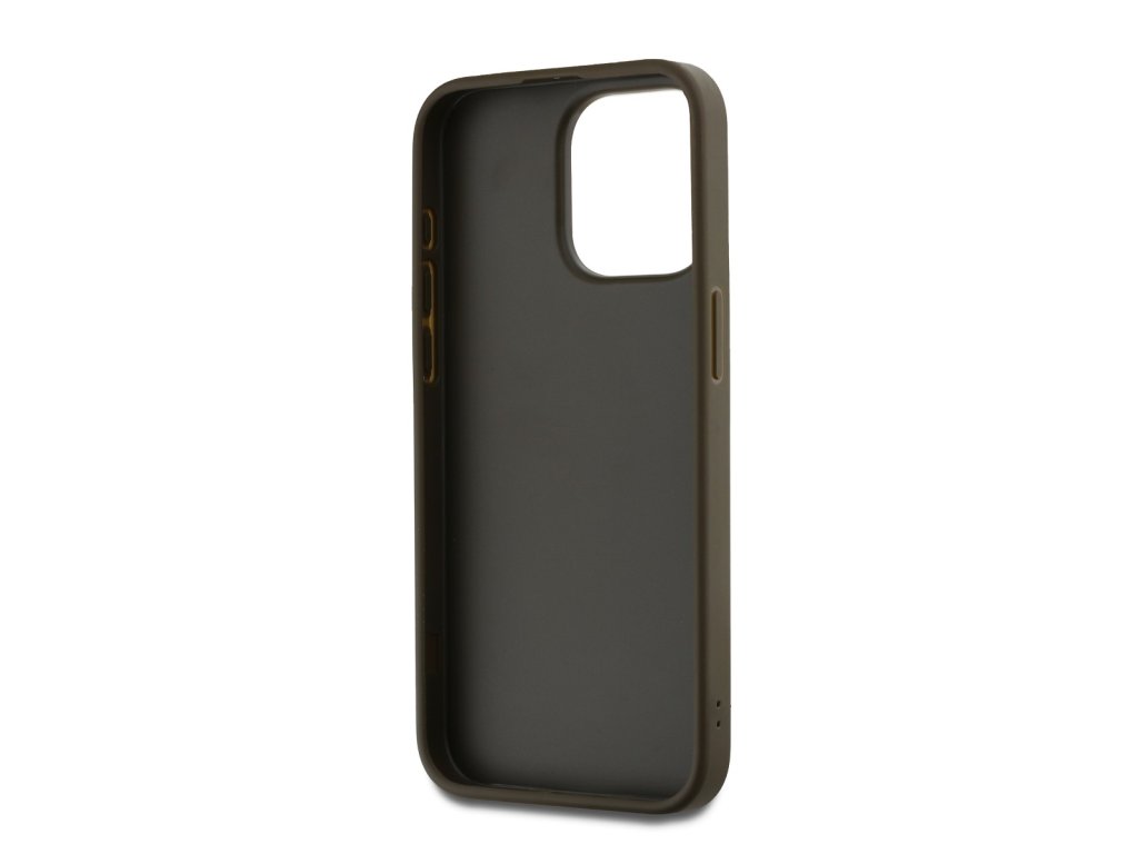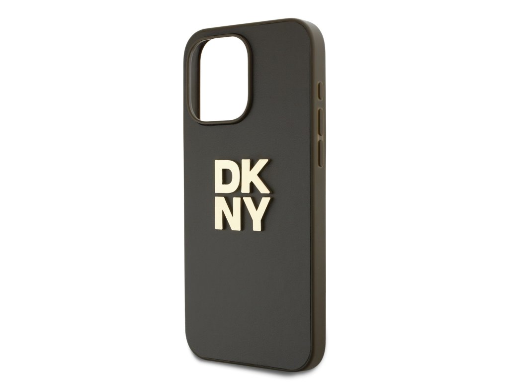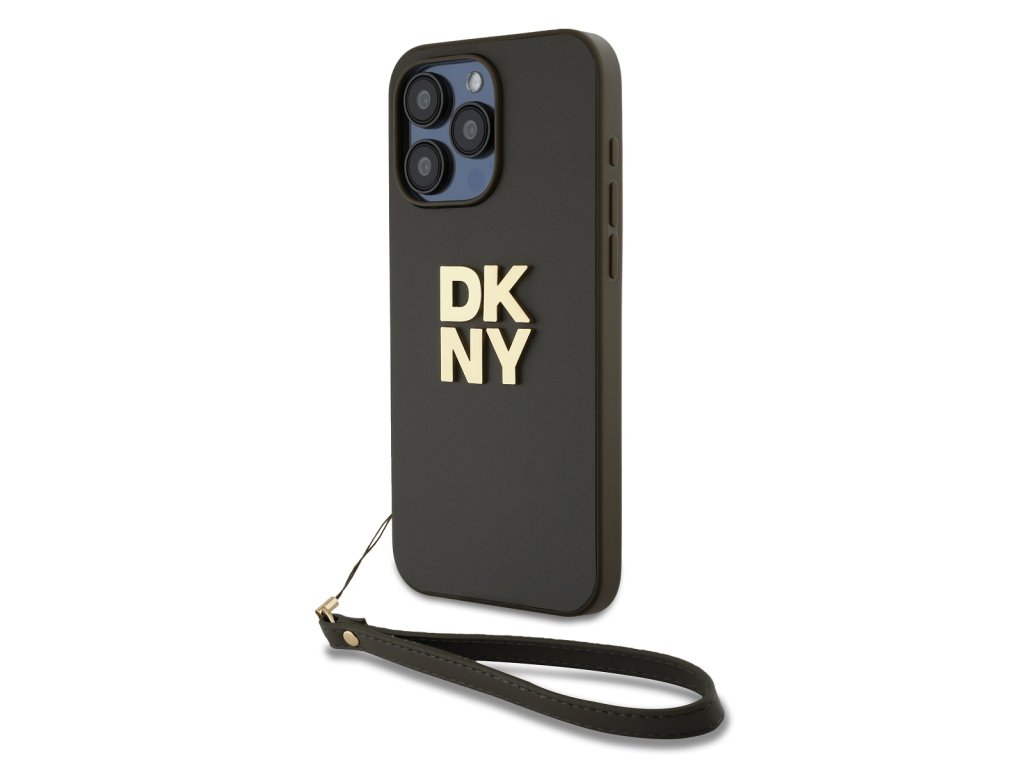 DKNY PU Leather Stack Logo Wrist Strap Zadní Kryt pro iPhone 14 Pro Max Brown