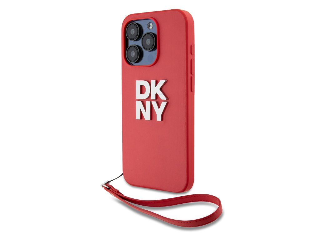 DKNY PU Leather Stack Logo Wrist Strap Zadní Kryt pro iPhone 14 Pro Max Red