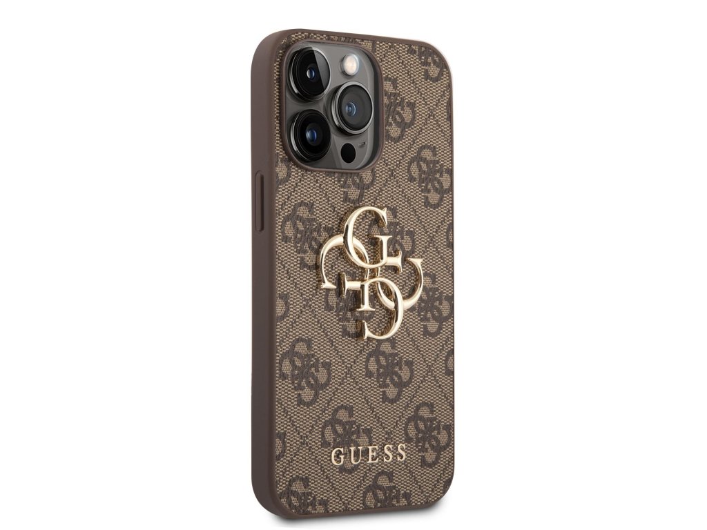 Guess PU 4G Metal Logo Zadní Kryt pro iPhone 14 Pro Max Brown