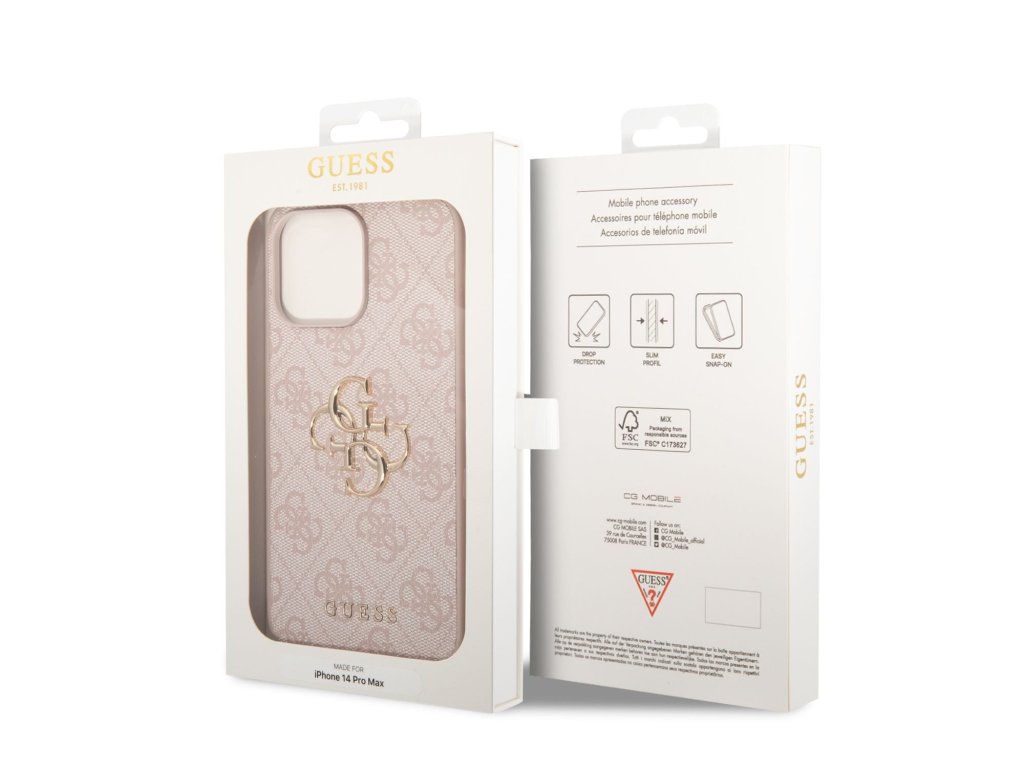 Guess PU 4G Metal Logo Zadní Kryt pro iPhone 14 Pro Max Pink