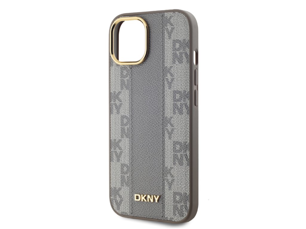 DKNY PU Leather Checkered Pattern Magsafe Zadní Kryt pro iPhone 15 Beige