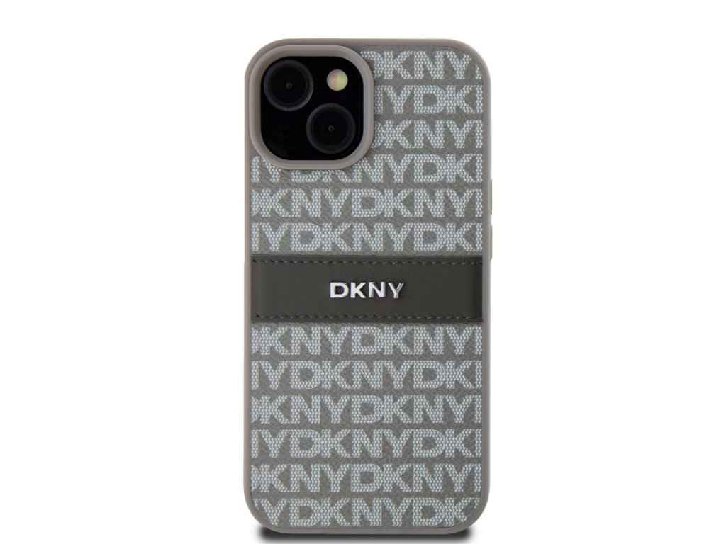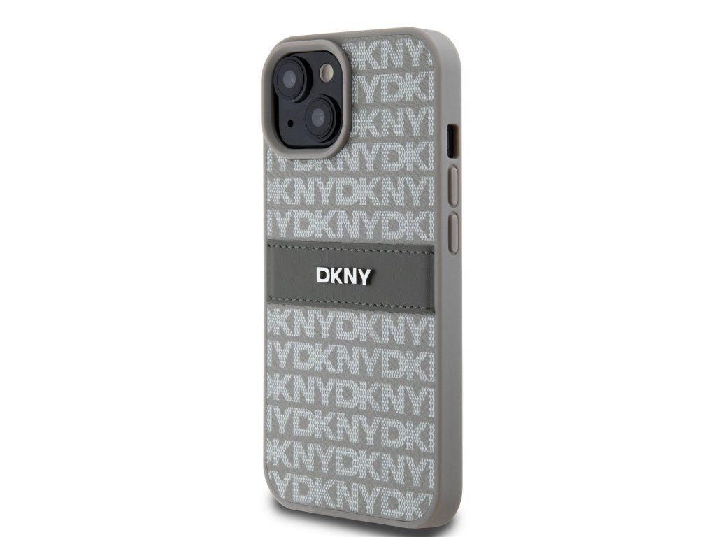 DKNY PU Leather Repeat Pattern Tonal Stripe Zadní Kryt pro iPhone 15 Beige
