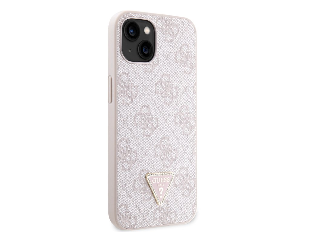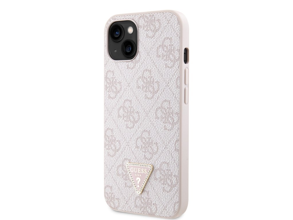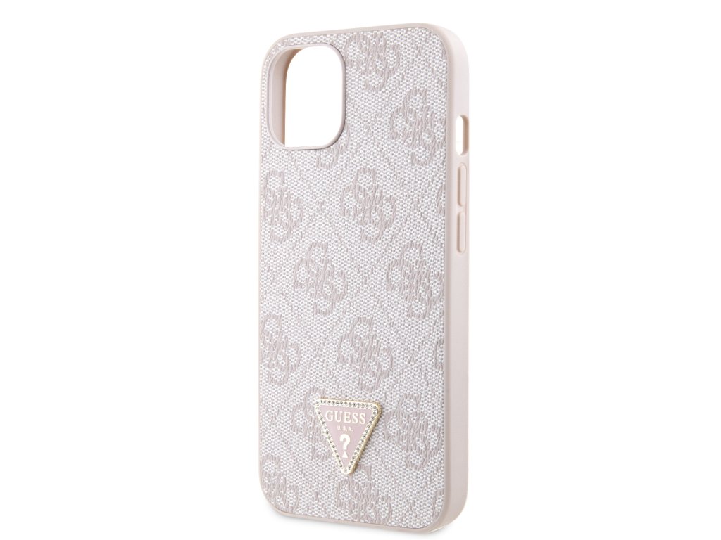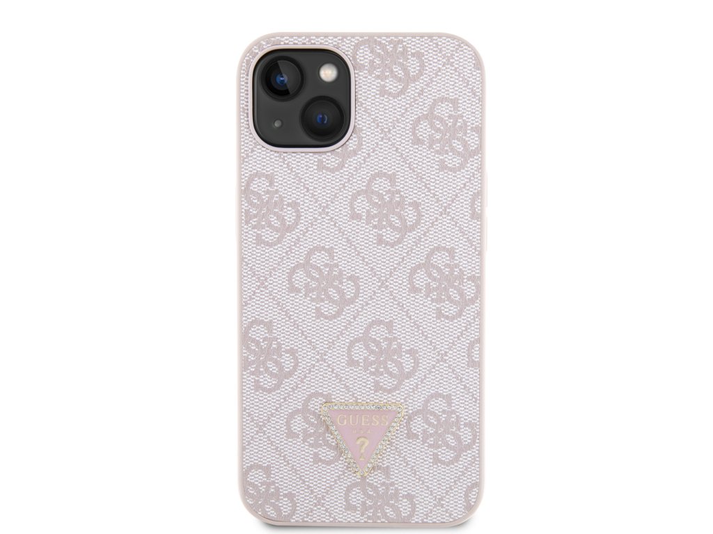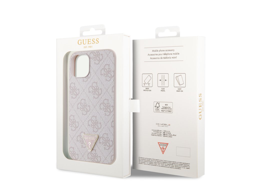 Guess PU 4G Strass Triangle Metal Logo Zadní Kryt pro iPhone 15 Pink