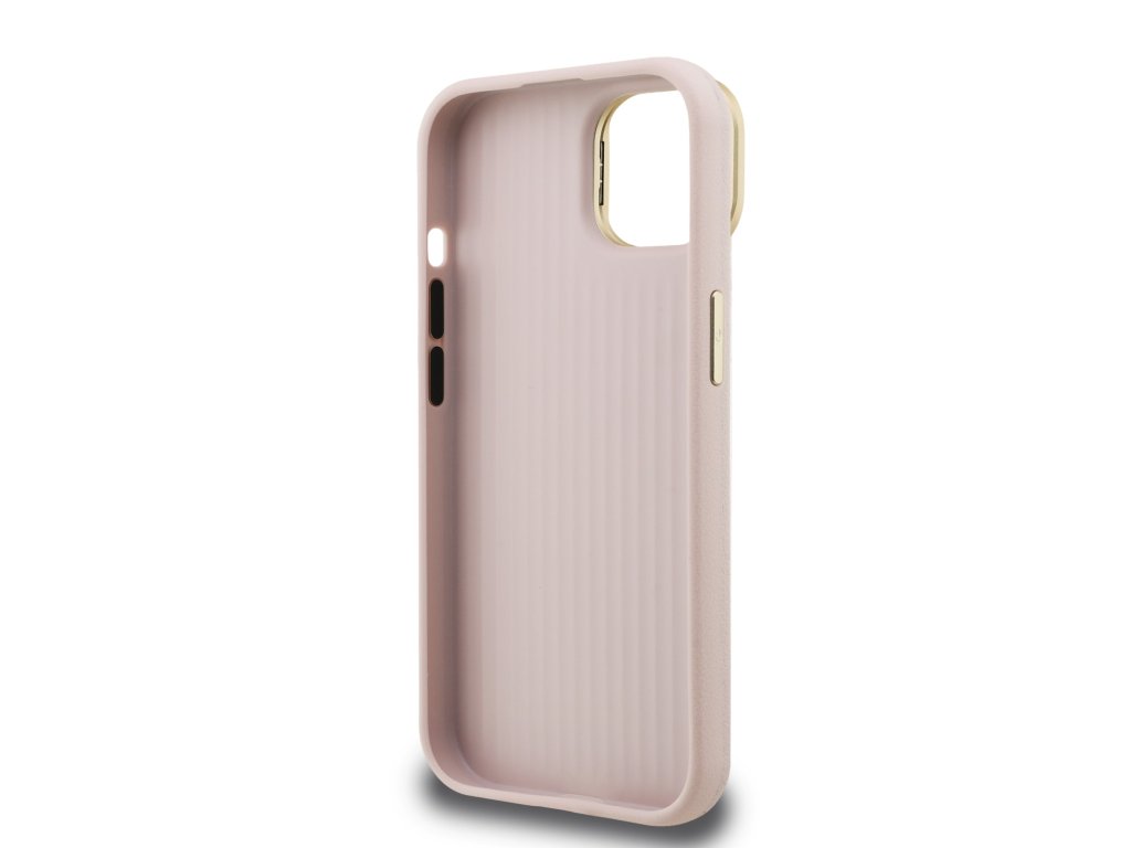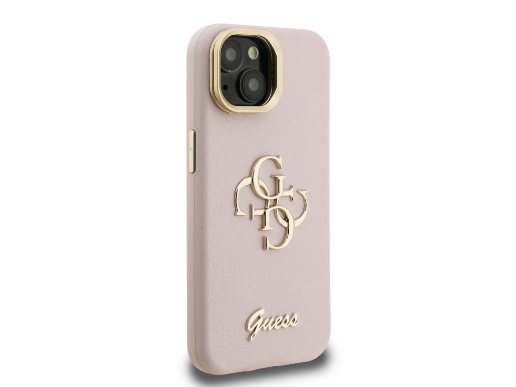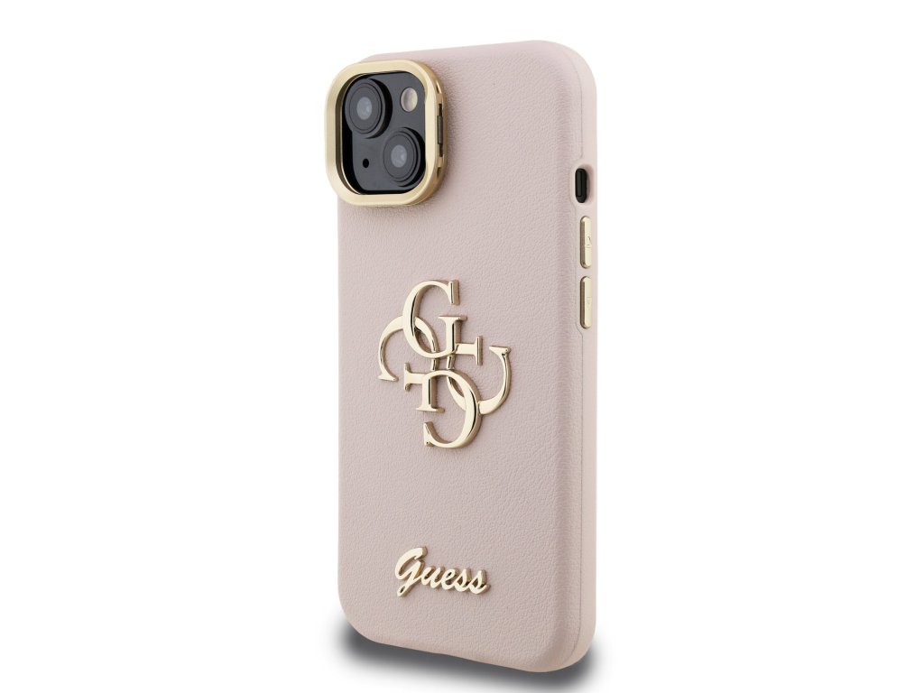 Guess PU Grained 4G Logo Stand Camera Frame Zadní Kryt pro iPhone 15 Pink