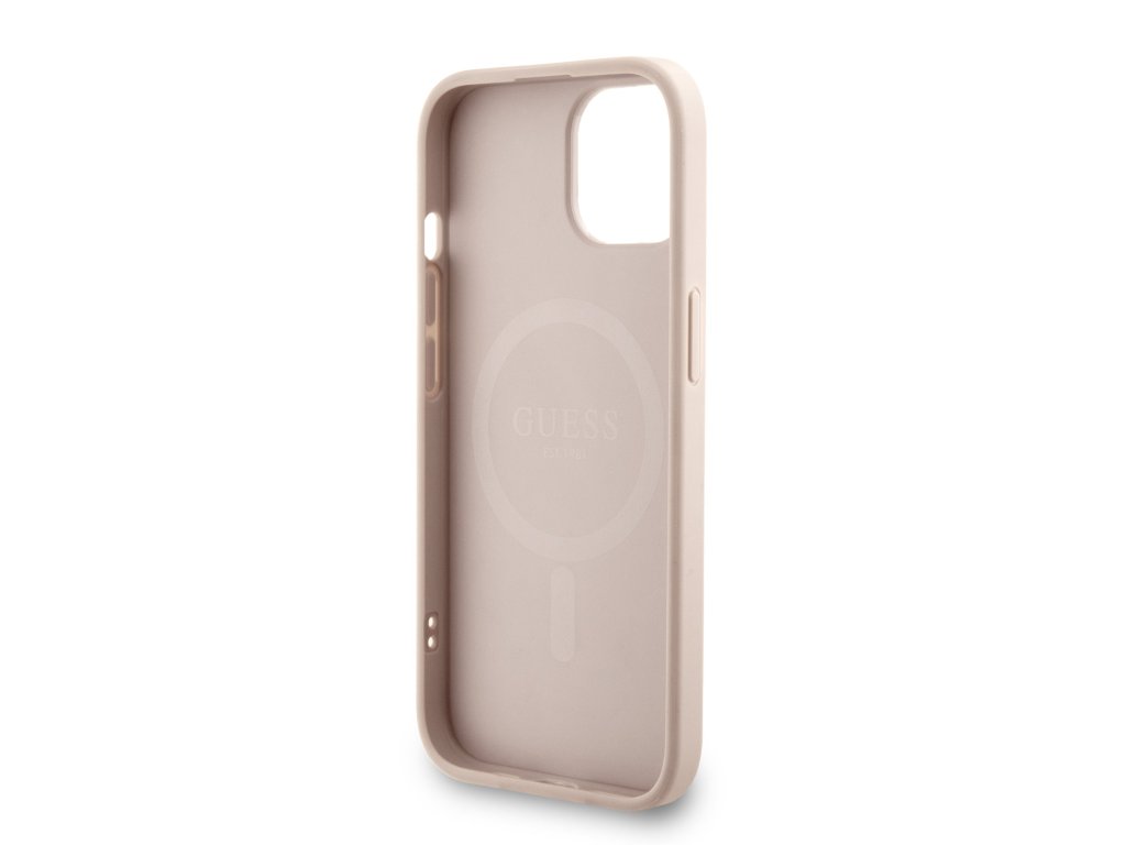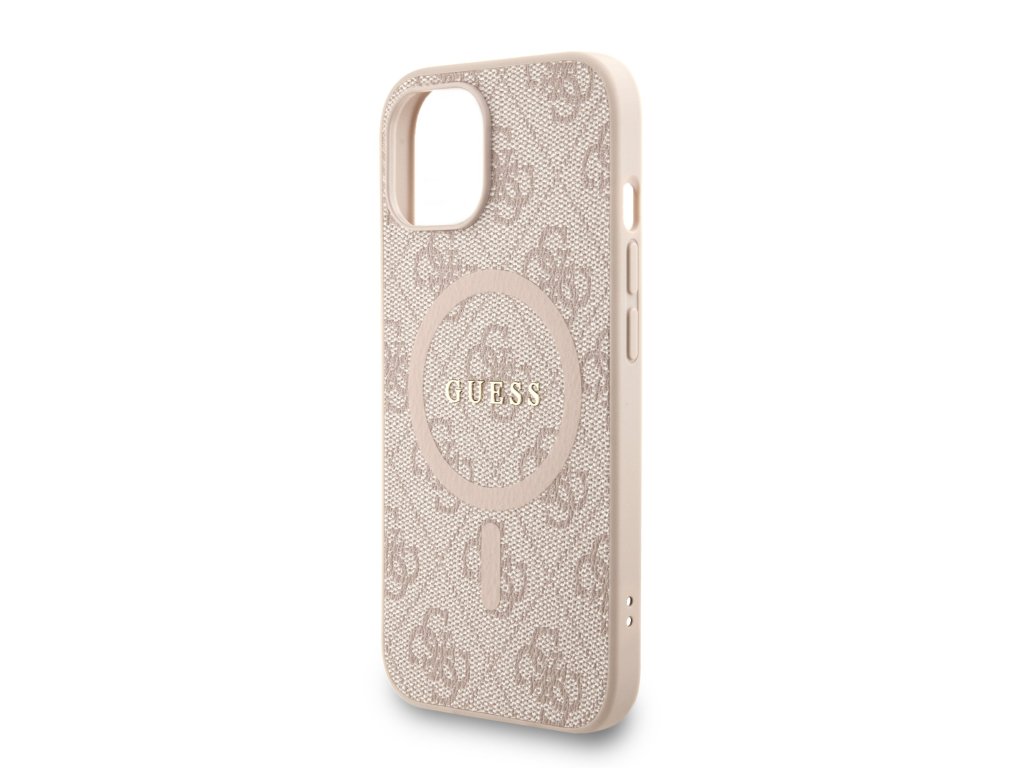 Guess PU Leather 4G Colored Ring Strap MagSafe Zadní Kryt pro iPhone 15 Pink
