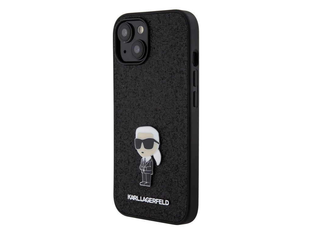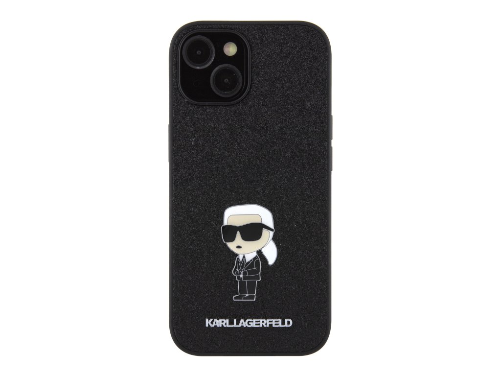 Karl Lagerfeld Fixed Glitter Metal Ikonik Zadní Kryt pro iPhone 15 Black