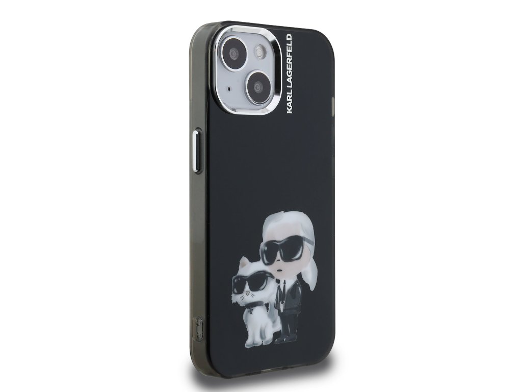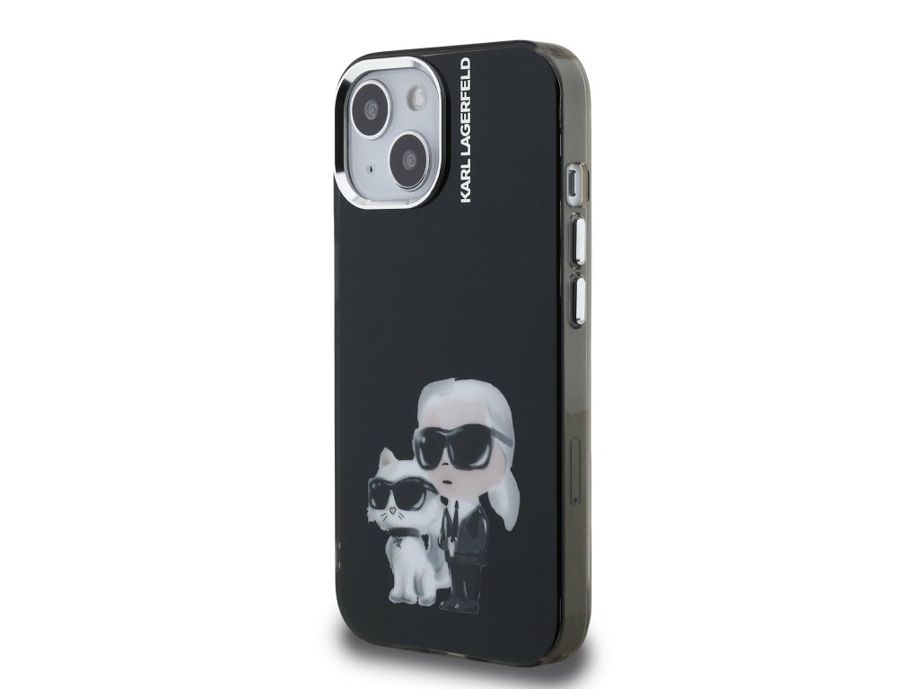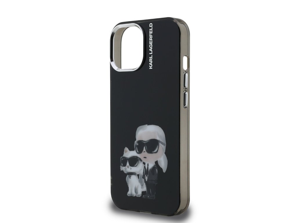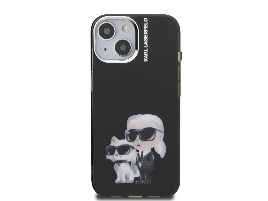 Karl Lagerfeld IML Aquarelle Karl and Choupette Zadní Kryt pro iPhone 15 Black