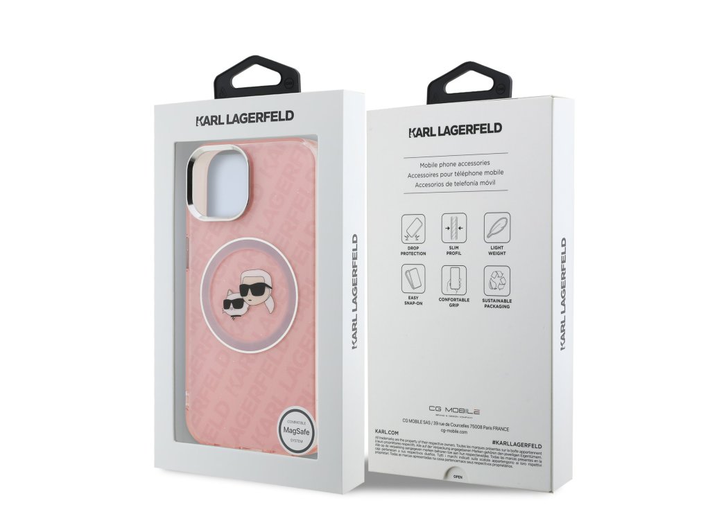 Karl Lagerfeld IML K&CH Heads Repeated Logo MagSafe Zadní Kryt pro iPhone 15 Pink