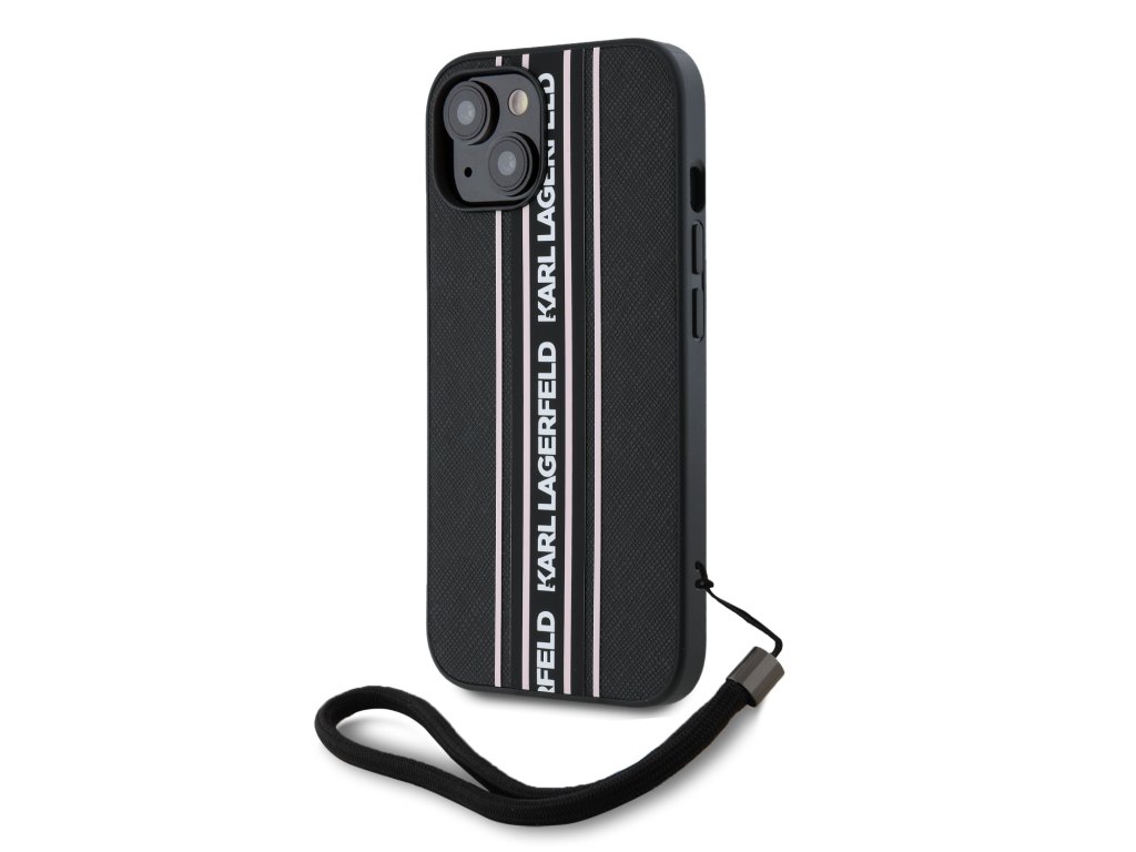 Karl Lagerfeld PU Saffiano Athleisure Stripe and Strap Zadní Kryt pro iPhone 15 Pink