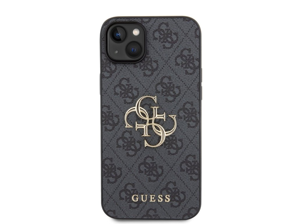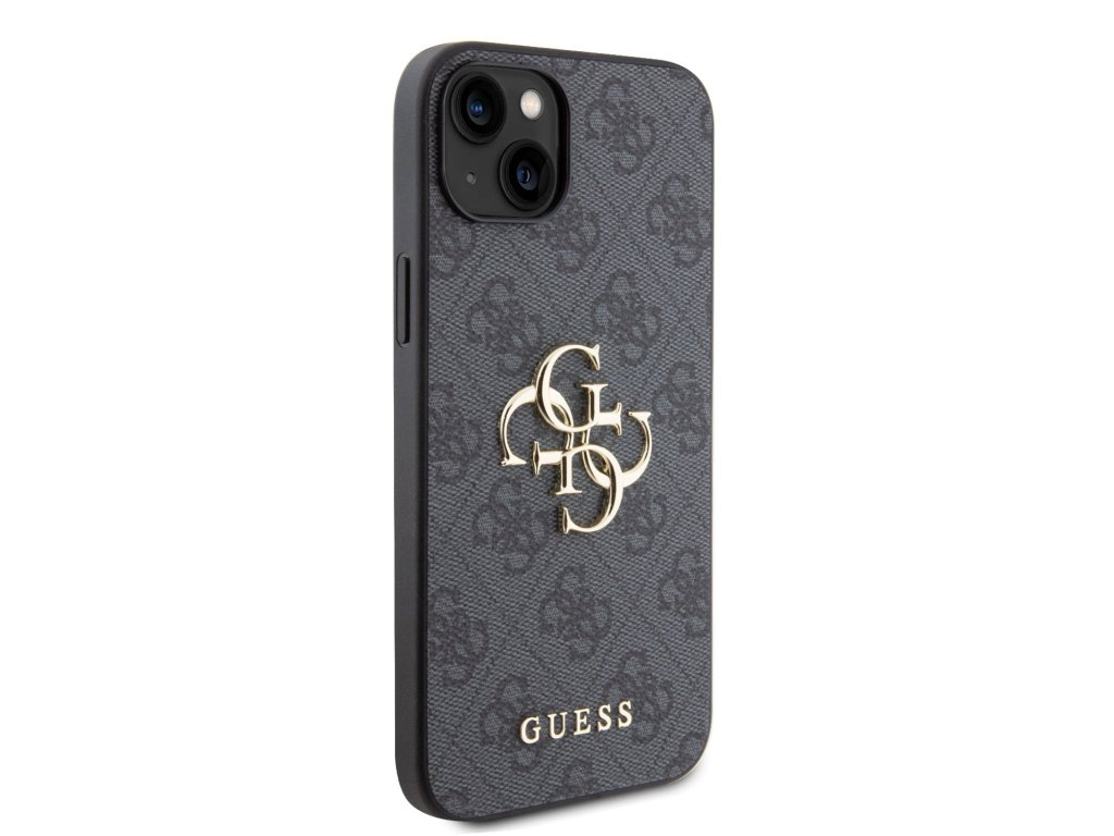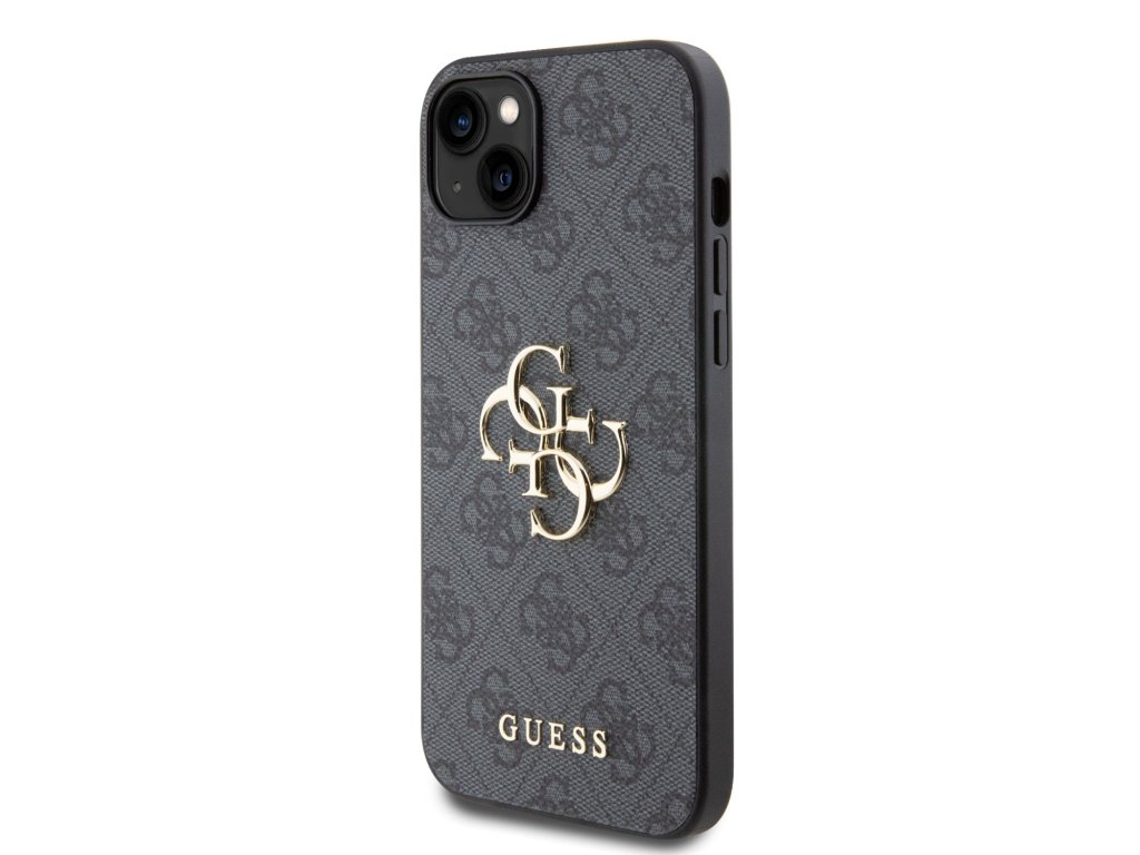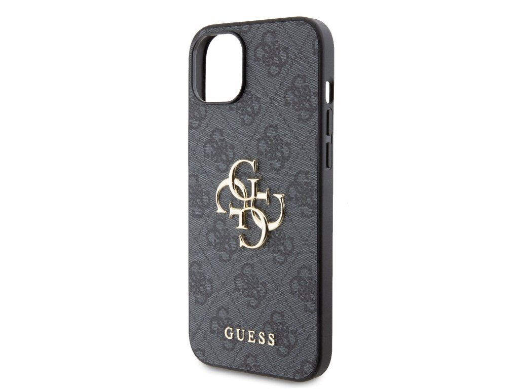 Guess PU 4G Metal Logo Zadní Kryt pro iPhone 15 Plus Grey