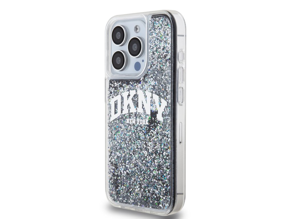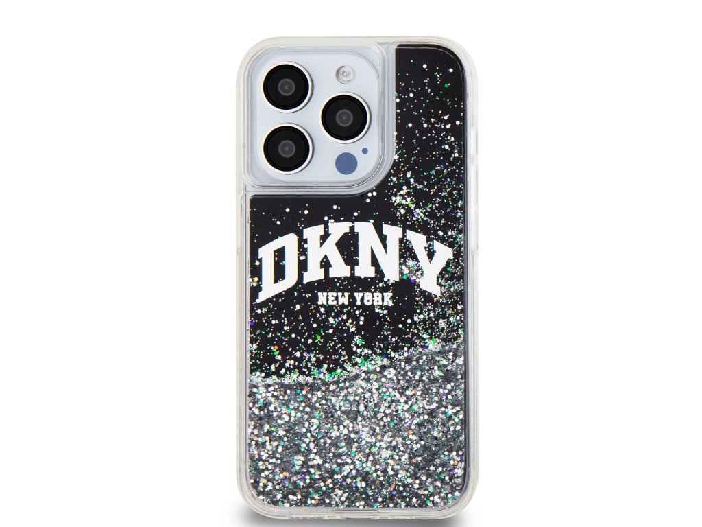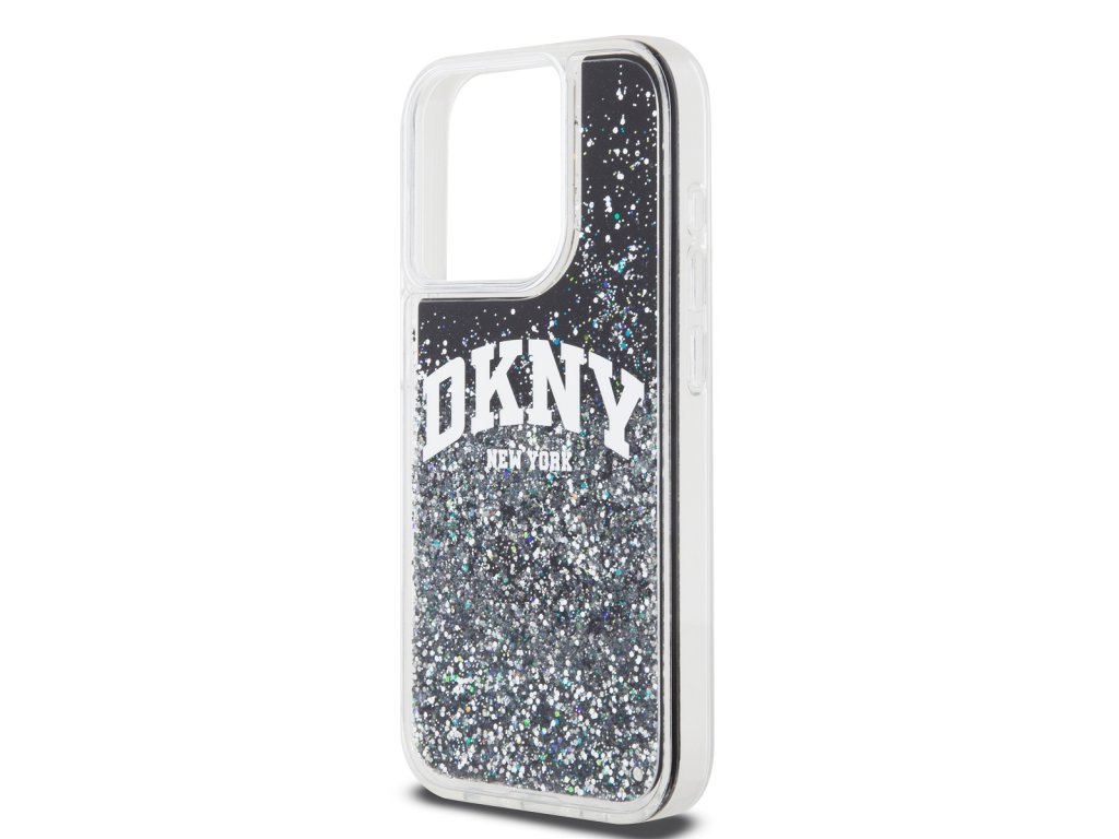 DKNY Liquid Glitter Arch Logo Zadní Kryt pro iPhone 15 Pro Black