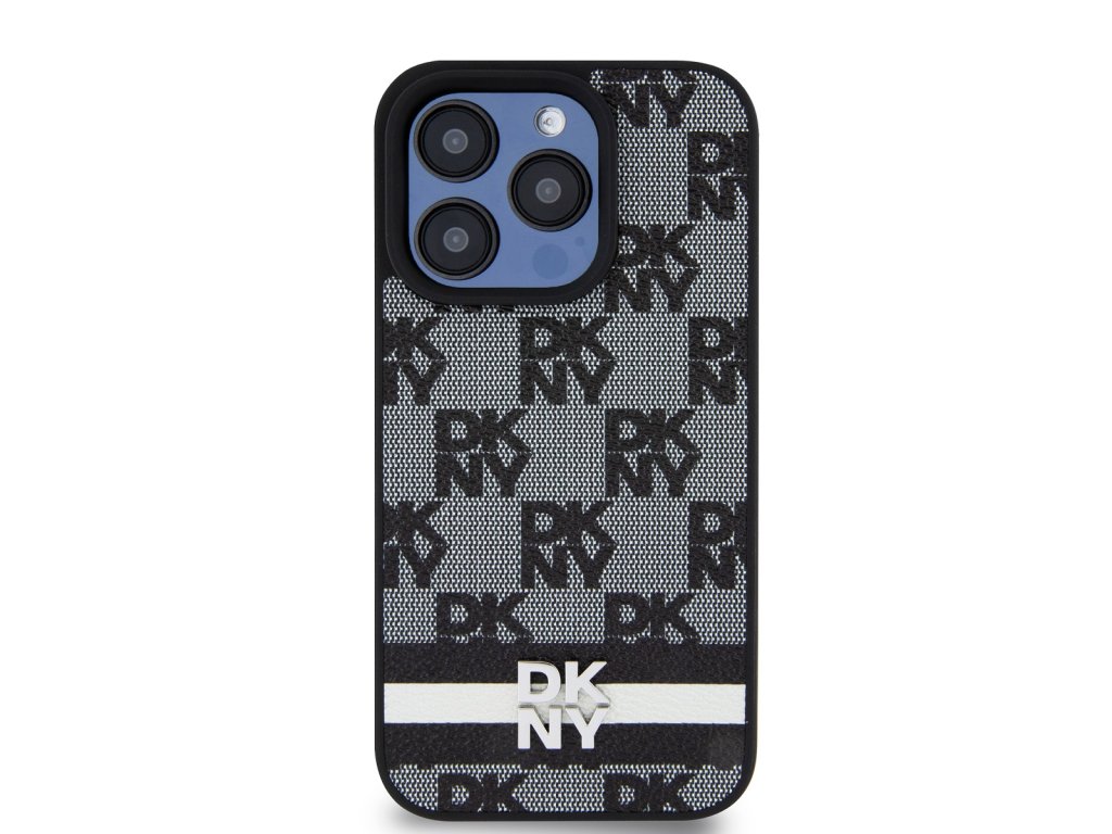 DKNY PU Leather Checkered Pattern and Stripe Zadní Kryt pro iPhone 15 Pro Black
