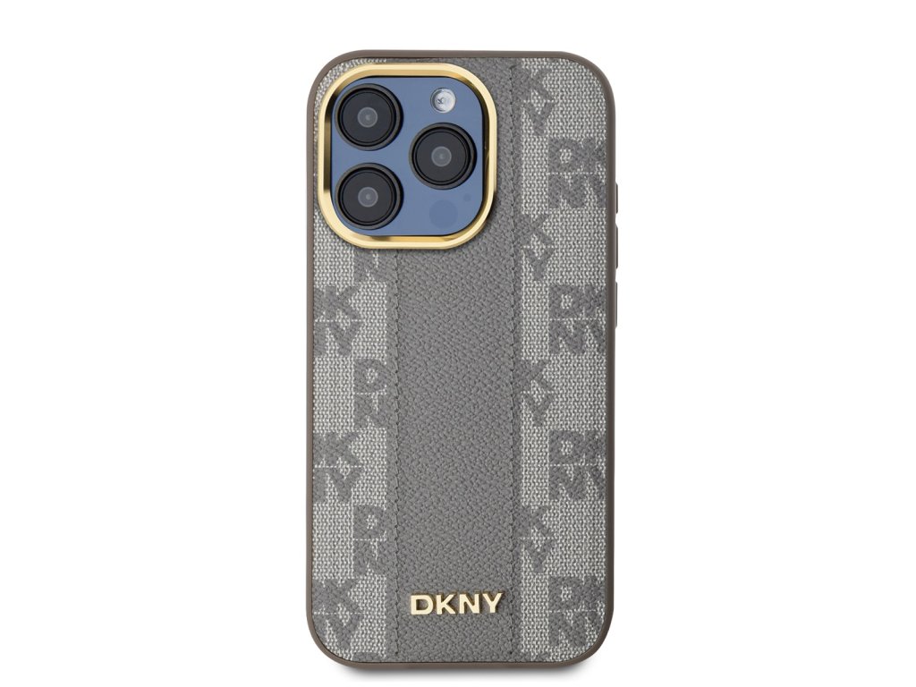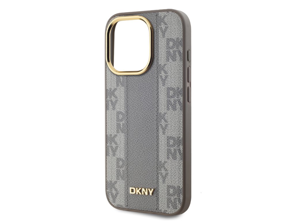 DKNY PU Leather Checkered Pattern Magsafe Zadní Kryt pro iPhone 15 Pro Beige
