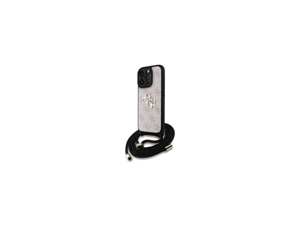 Guess PU 4G Metal Logo Crossbody Popruh Zadní Kryt pro iPhone 15 Pro Pink
