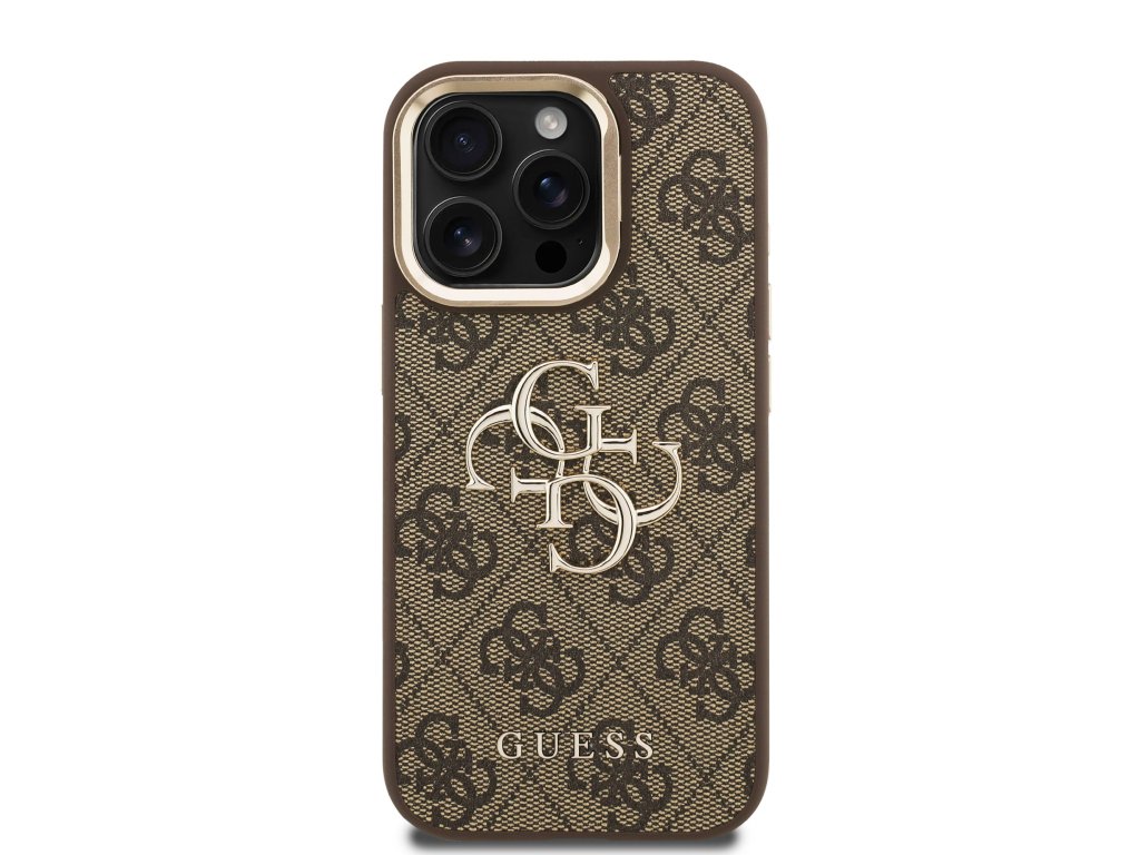 Guess PU 4G Metal Logo Stand Camera Frame Zadní Kryt pro iPhone 15 Pro Brown