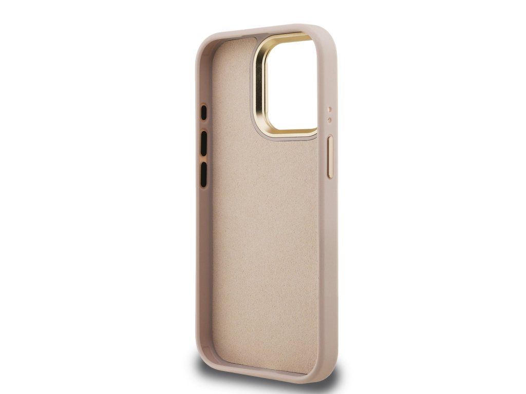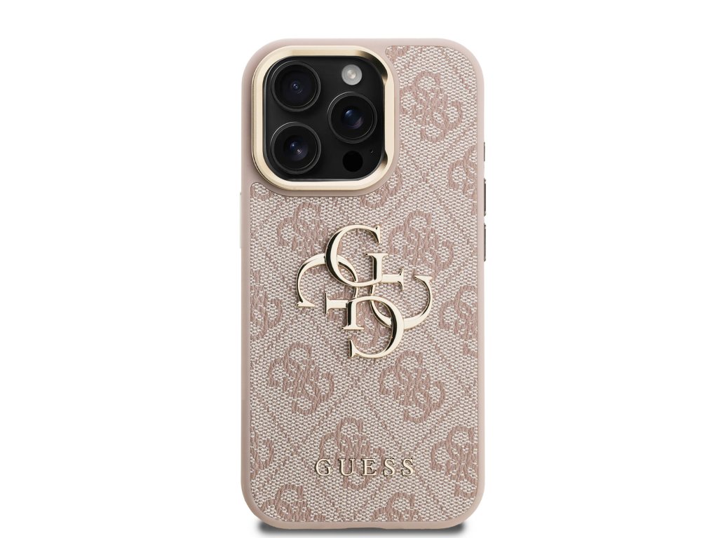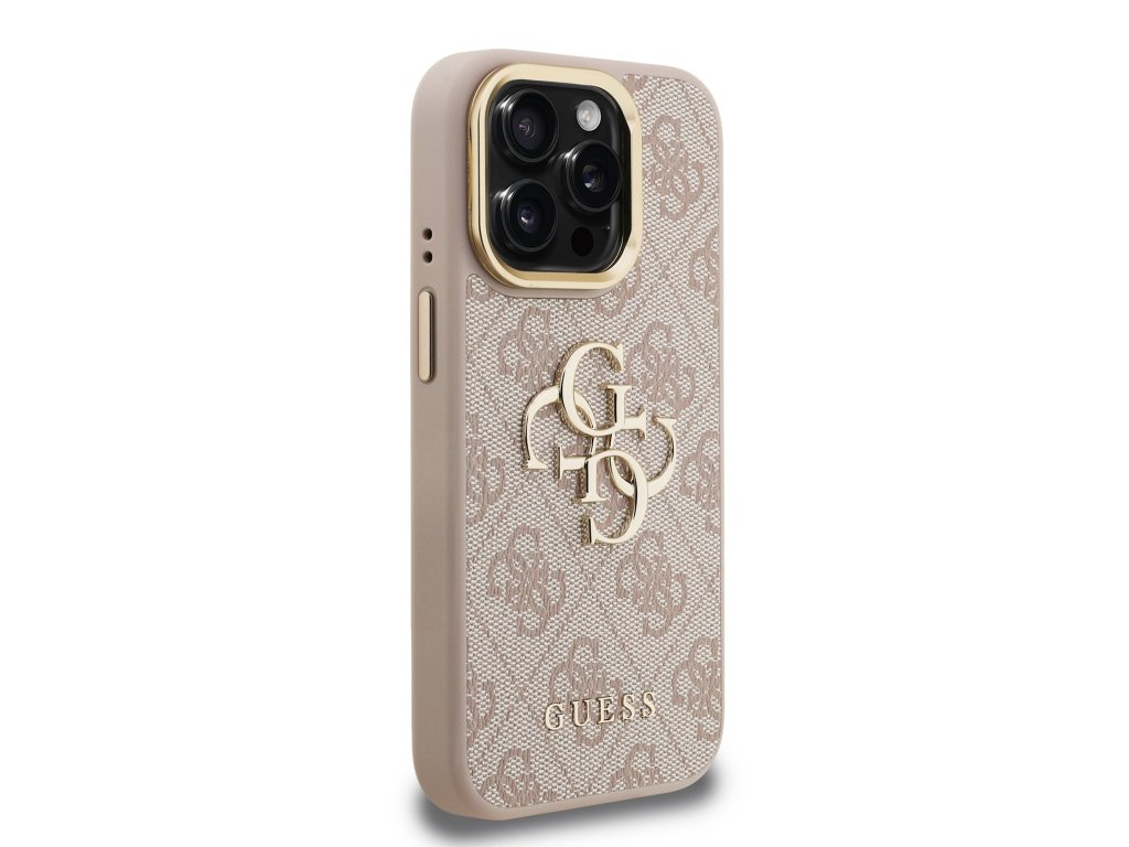 Guess PU 4G Metal Logo Stand Camera Frame Zadní Kryt pro iPhone 15 Pro Pink