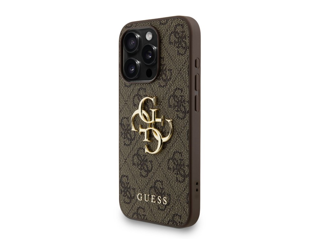 Guess PU 4G Metal Logo Strap Zadní Kryt pro iPhone 15 Pro Brown