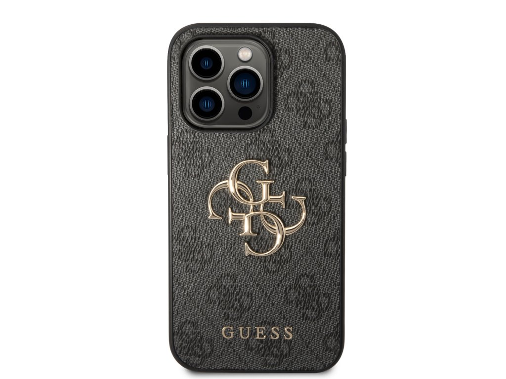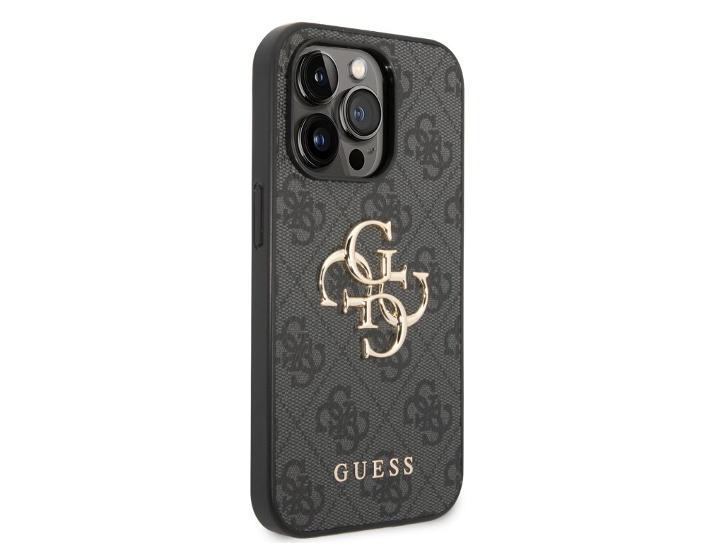 Guess PU 4G Metal Logo Zadní Kryt pro iPhone 15 Pro Grey