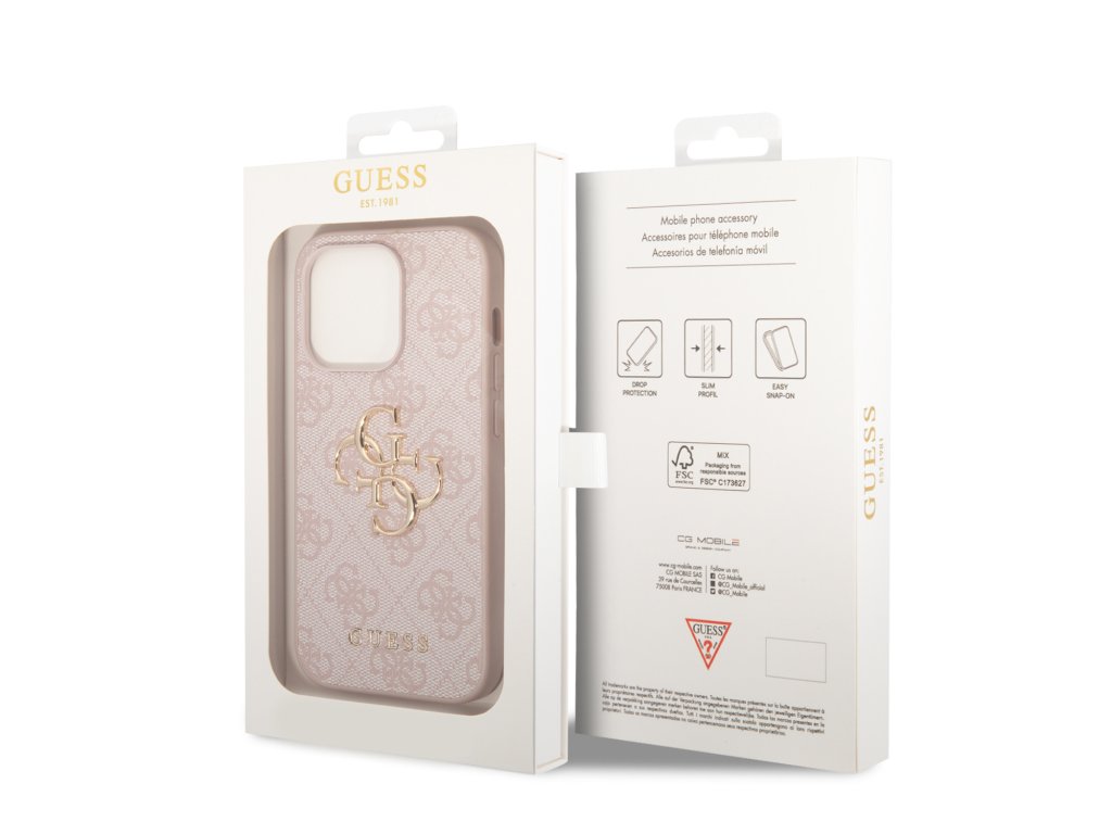 Guess PU 4G Metal Logo Zadní Kryt pro iPhone 15 Pro Pink