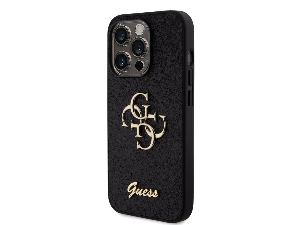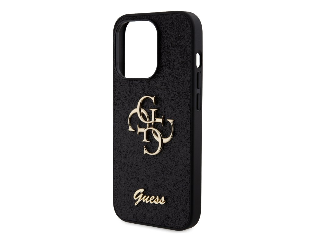Guess PU Fixed Glitter 4G Metal Logo Zadní Kryt pro iPhone 15 Pro Black