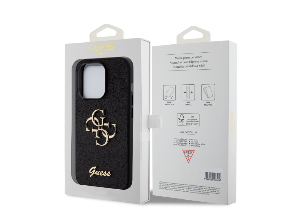 Guess PU Fixed Glitter 4G Metal Logo kryt je perfektním módním doplňkem a zároveň spolehlivou ochranou vašeho telefonu.