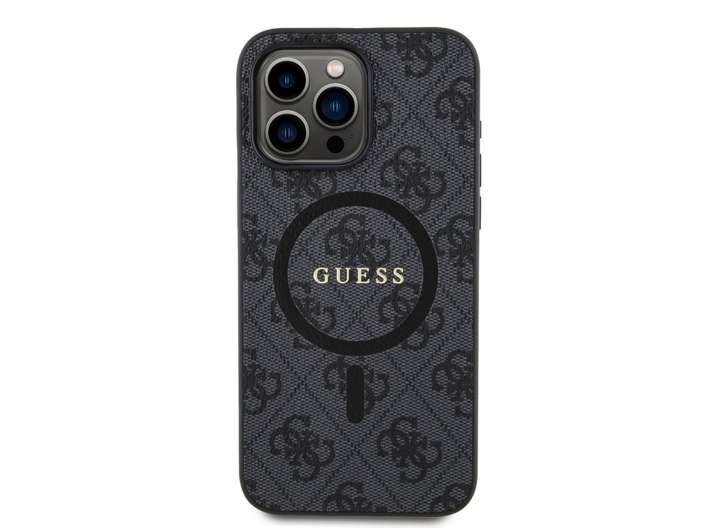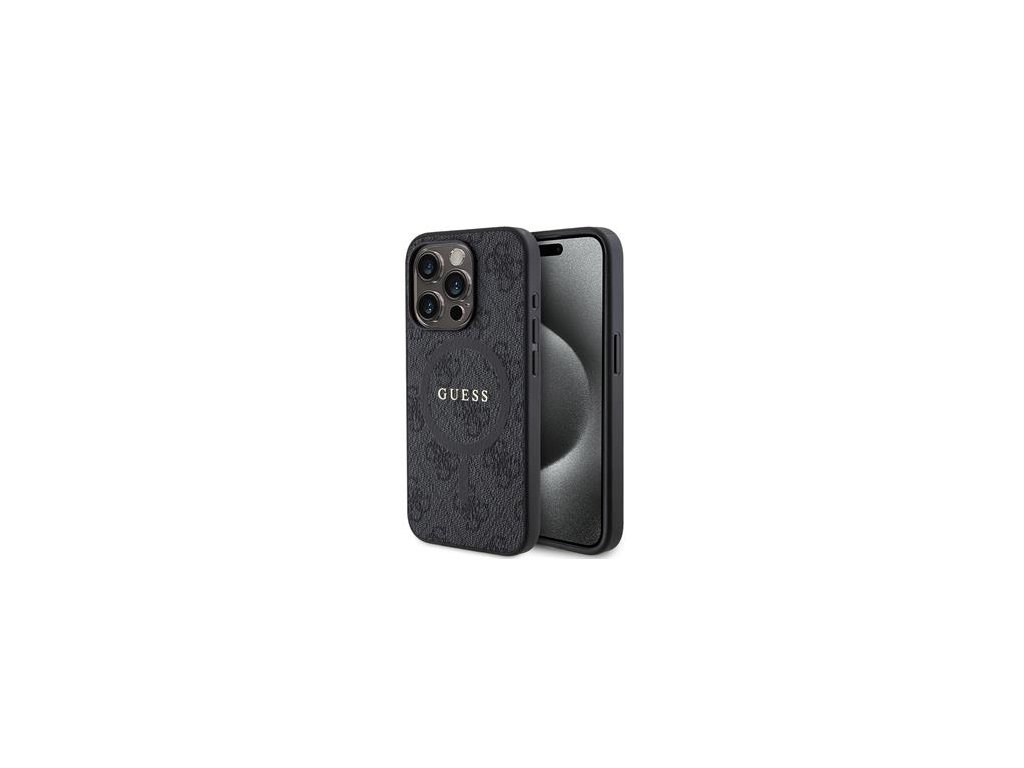 Guess PU Leather 4G Colored Ring MagSafe Zadní Kryt pro iPhone 15 Pro Black