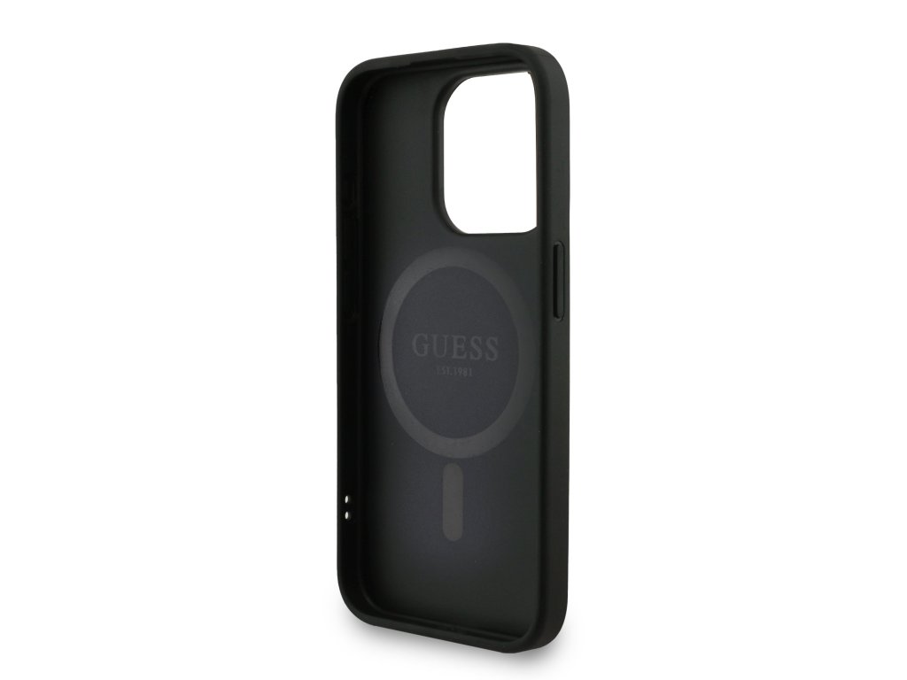 Guess PU Leather 4G Colored Ring Strap MagSafe Zadní Kryt pro iPhone 15 Pro Black