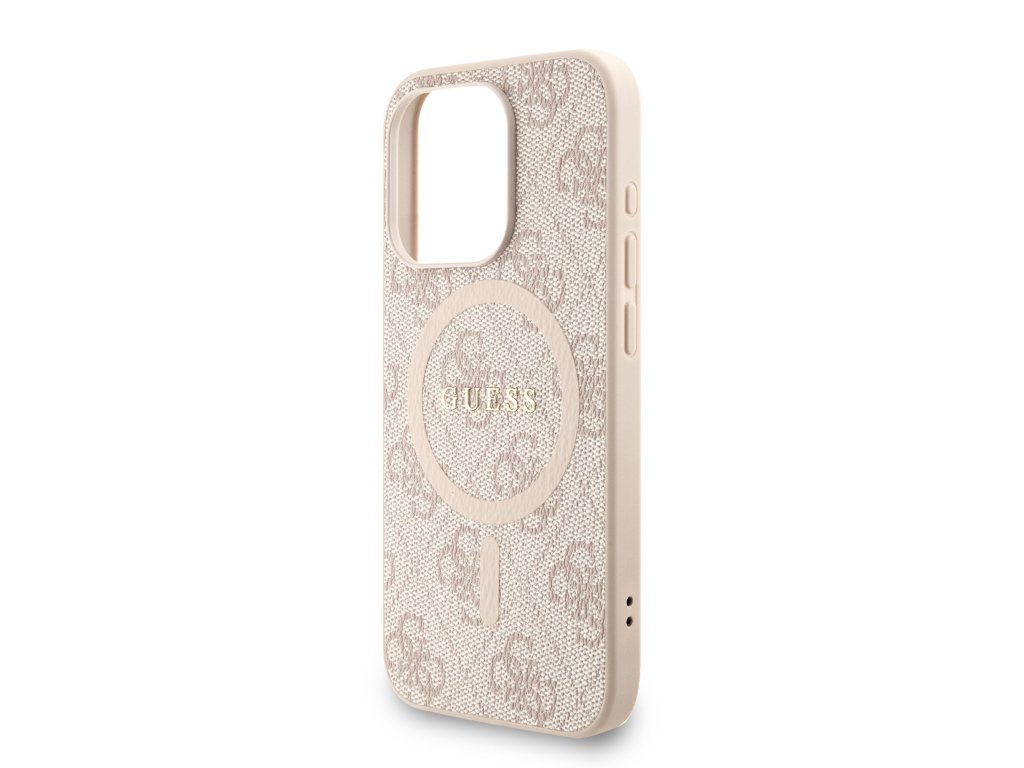 Guess PU Leather 4G Colored Ring Strap MagSafe Zadní Kryt pro iPhone 15 Pro Pink