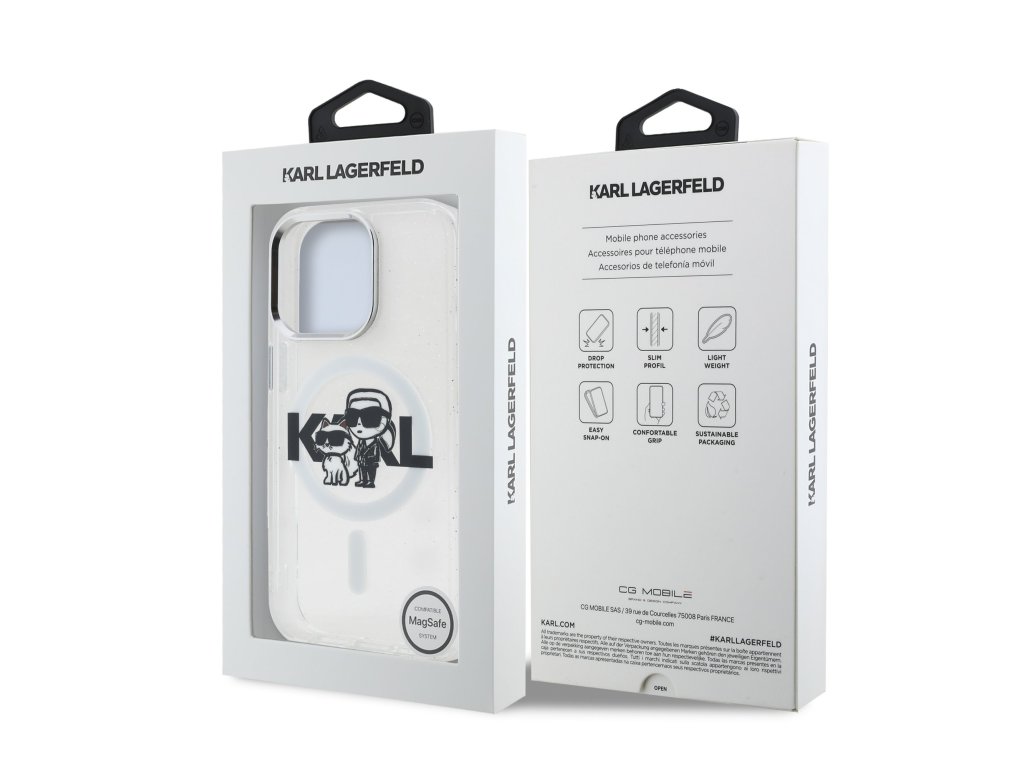 Karl Lagerfeld IML Glitter Karl and Choupette Sketch MagSafe zadní kryt je dokonalý doplněk pro váš telefon i outfit, který kombinuje funkčnost a styl v jednom.Tento kryt je vyroben z kombinace pevného PC plastu na zadní straně a TPU měkkého plastu na bocích, což vytváří dokonalou symbiózu odolnosti a pohodlí.
